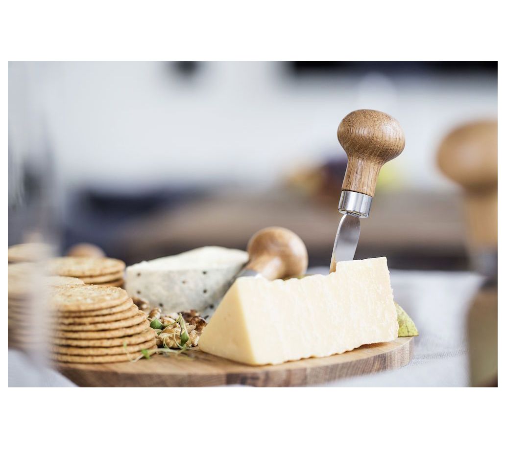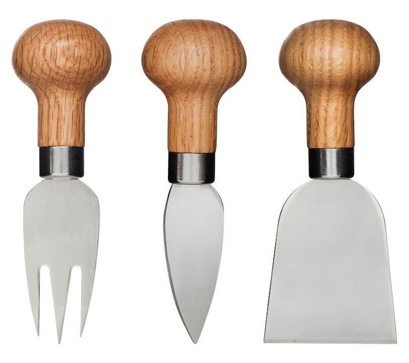 Elevate your next cocktail hour or charcuterie board with this beautiful three piece set that includes two cheese knives and a fork, each crafted of rich oak and durable stainless steel. From Sagaform.