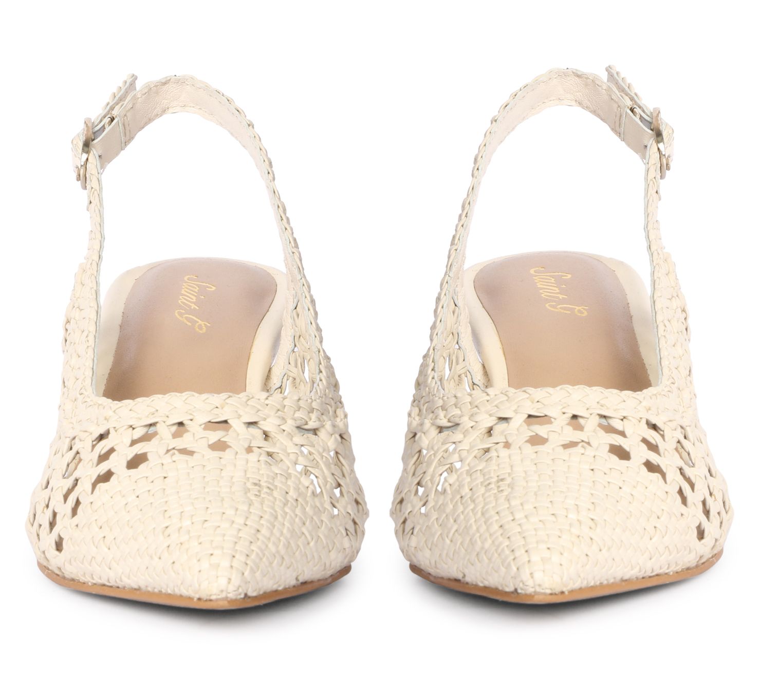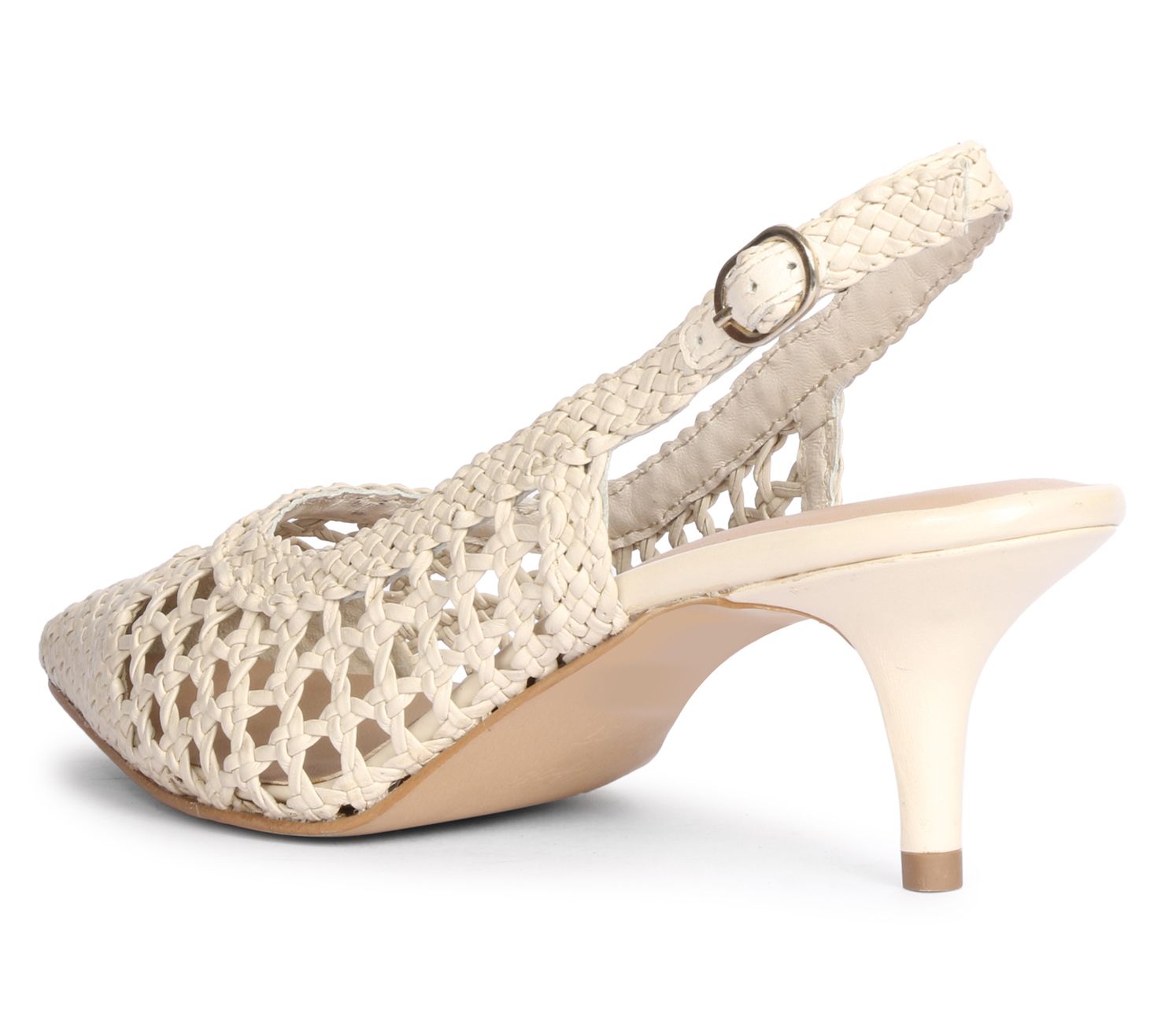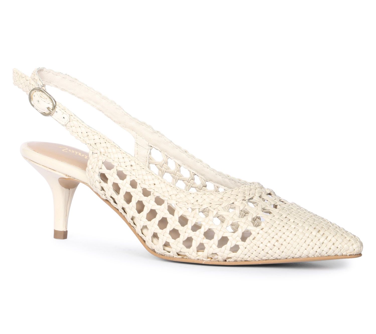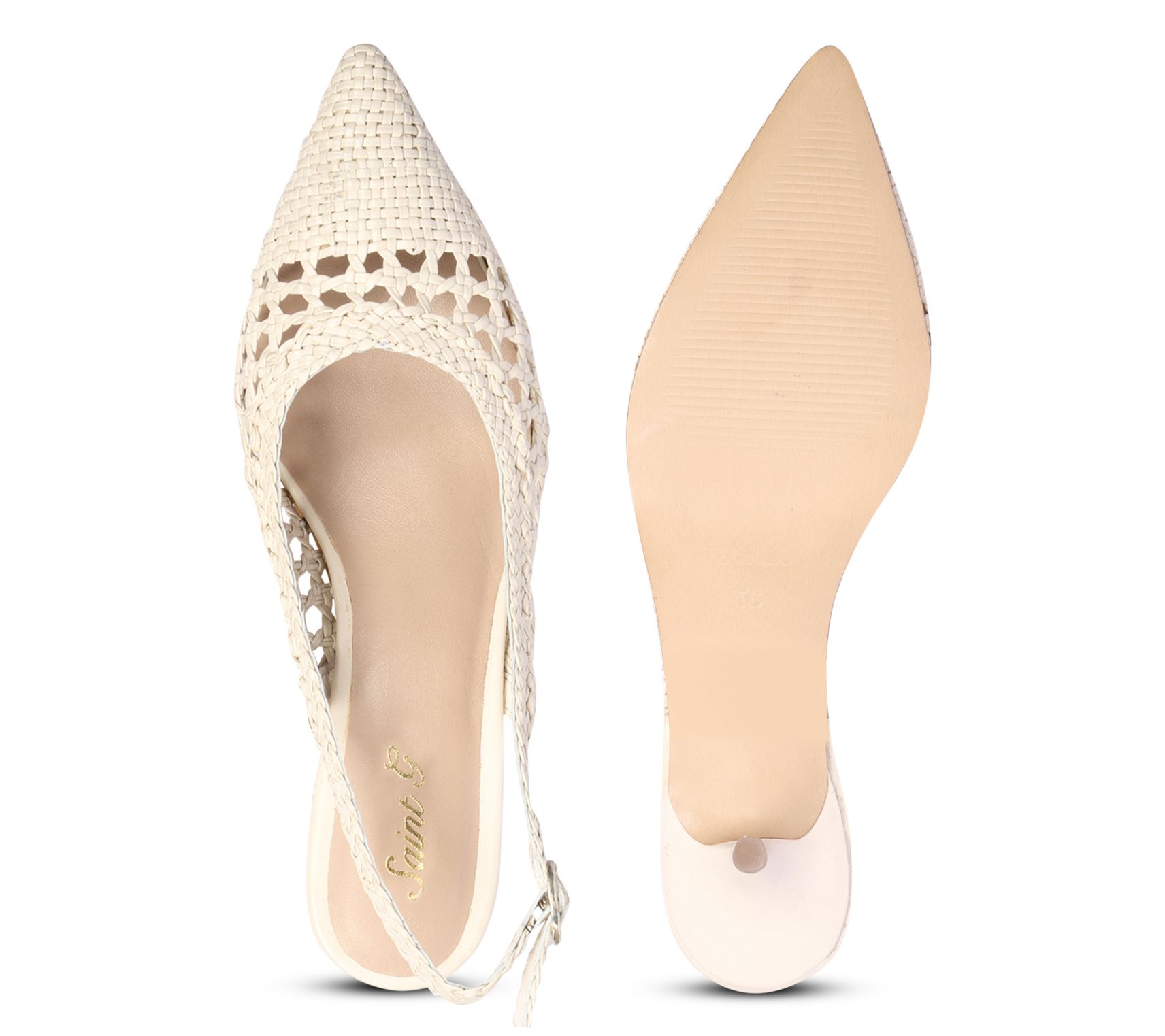 • Adjustable buckle strap, pointed toe, woven design