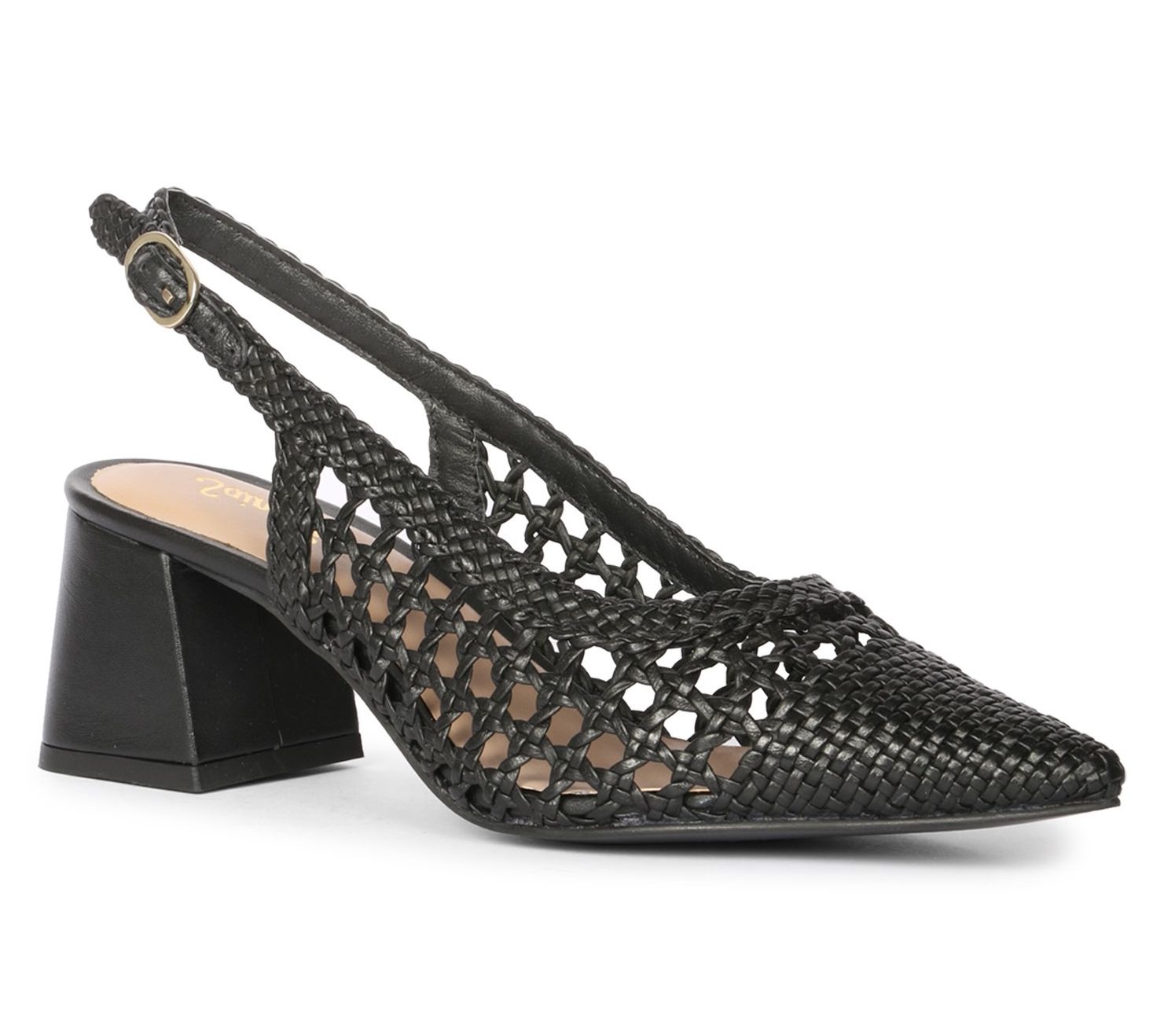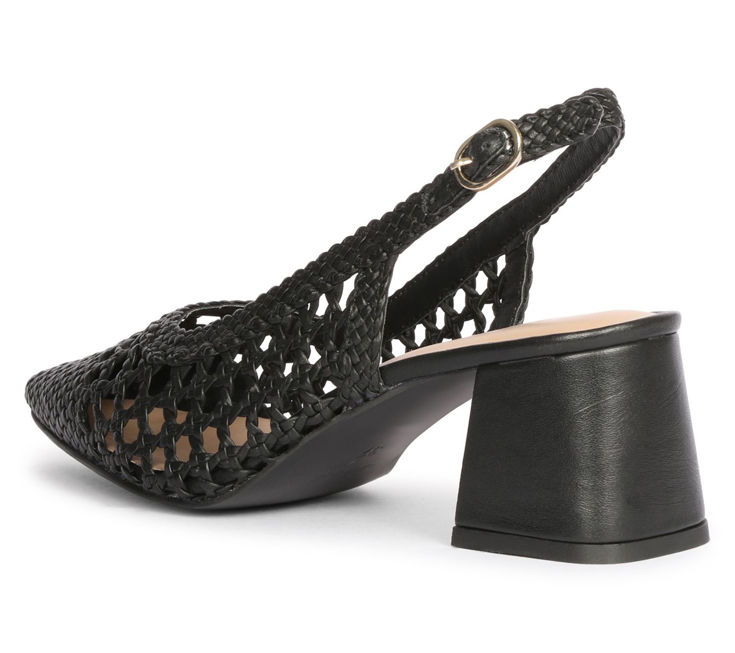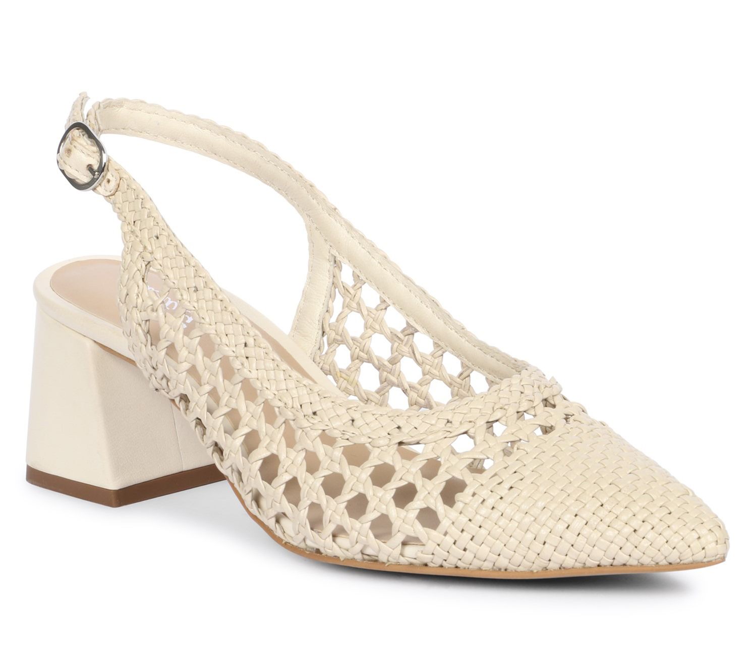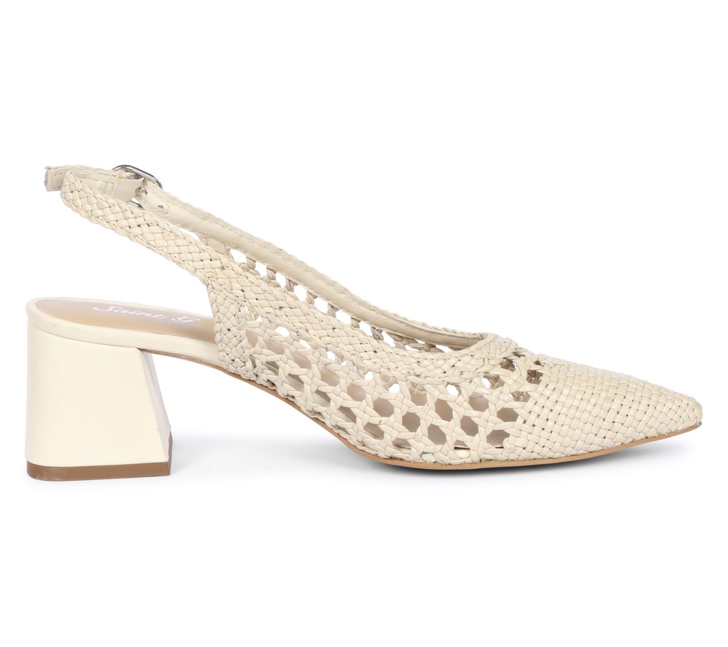 A day at the office, a lunch date, or an evening event -- these woven leather slingback pumps from Saint G fit seamlessly into your plans. The statement woven upper, combined with a pointed toe and a mid-block heel, adds an edgy touch to your attire. Designed with comfort in mind, they feature a padded leather footbed and a buckle-fastening strap for a secure fit. Effortlessly chic and versatile, they elevate any ensemble with ease. From Saint G.