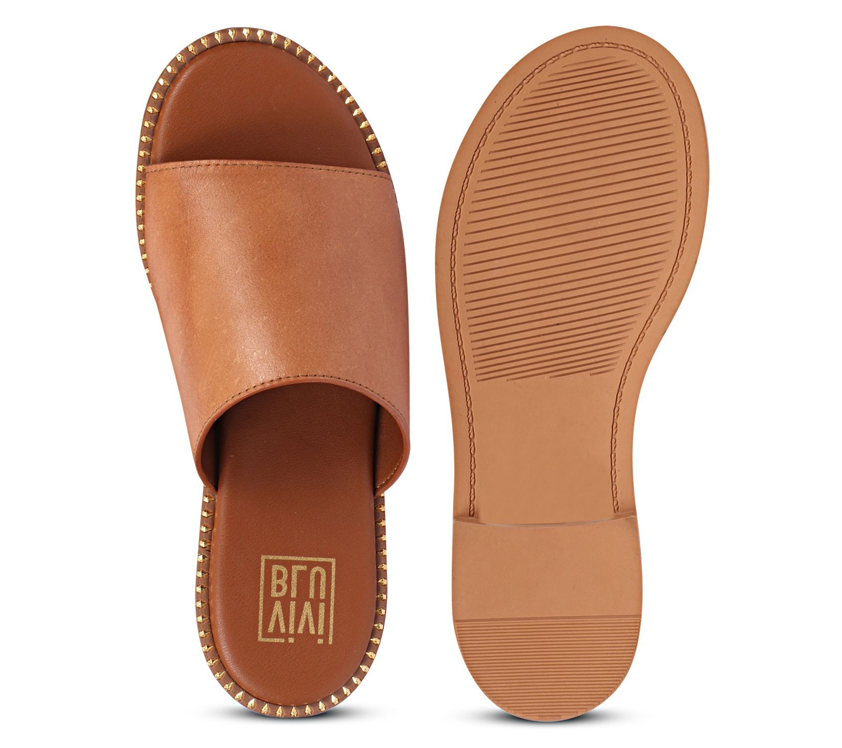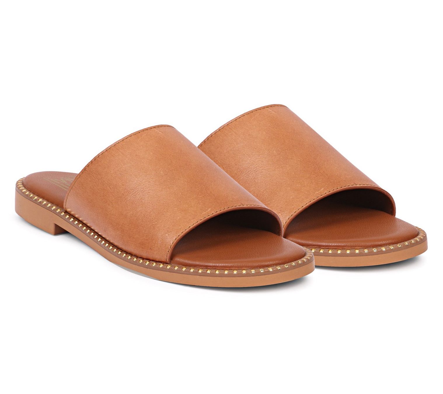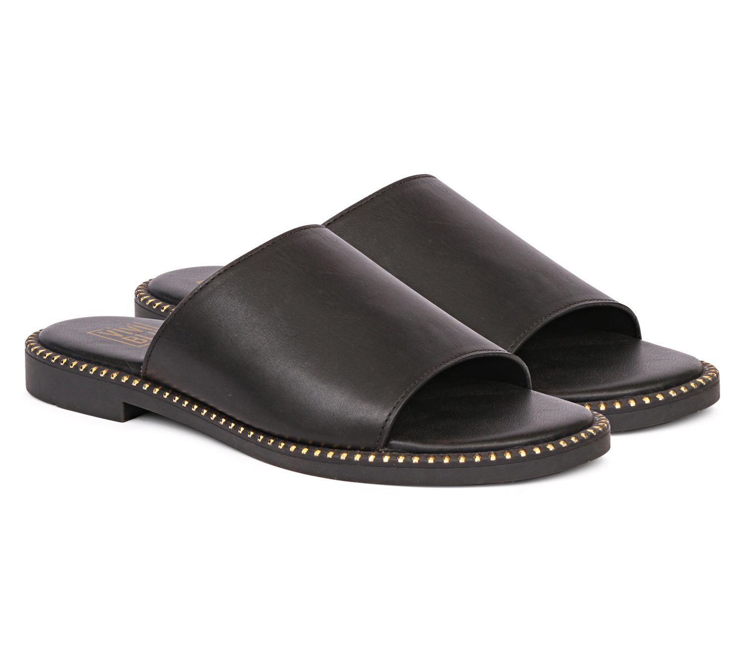 Sunny afternoons and city strolls call for the easy sophistication of these Kalina leather slide sandals. Smooth leather and a cushioned insole keep every step comfortable, while decorative studs along the sole add a subtle hint of shine to your favorite summer looks. From Saint G.