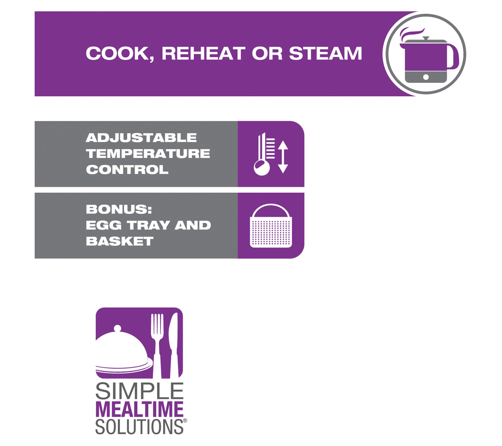 • Includes multi-pot, egg tray, noodle basket, and instruction booklet