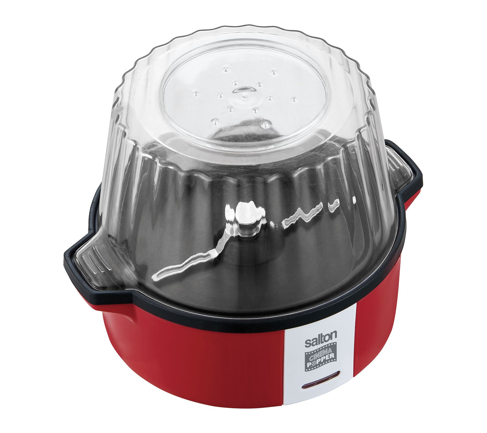 Create delicious snacks for movie night in minutes with this popcorn maker -- a stirring rod distributes kernels for even popping, while the built-in butter well delivers that classic flavor as you watch your favorite films. The non-stick cooking surface and easy On/Off switch make snack prep hassle-free, and the lid doubles as a serving bowl for extra convenience. From Salton.