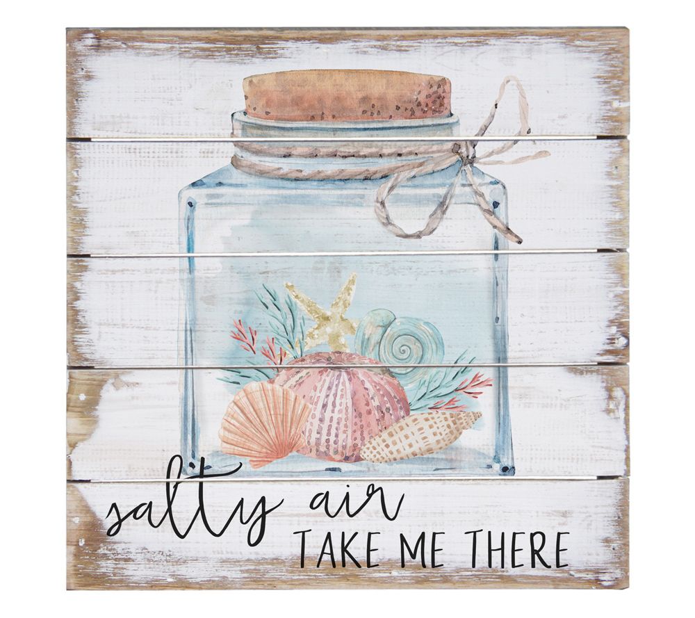 Dress up any small space with the coastal-inspired charm of this Salty Air Pallet Petite. It sits beautifully on a tabletop and can be hung on the wall for convenient versatility. From Sincere Surroundings.