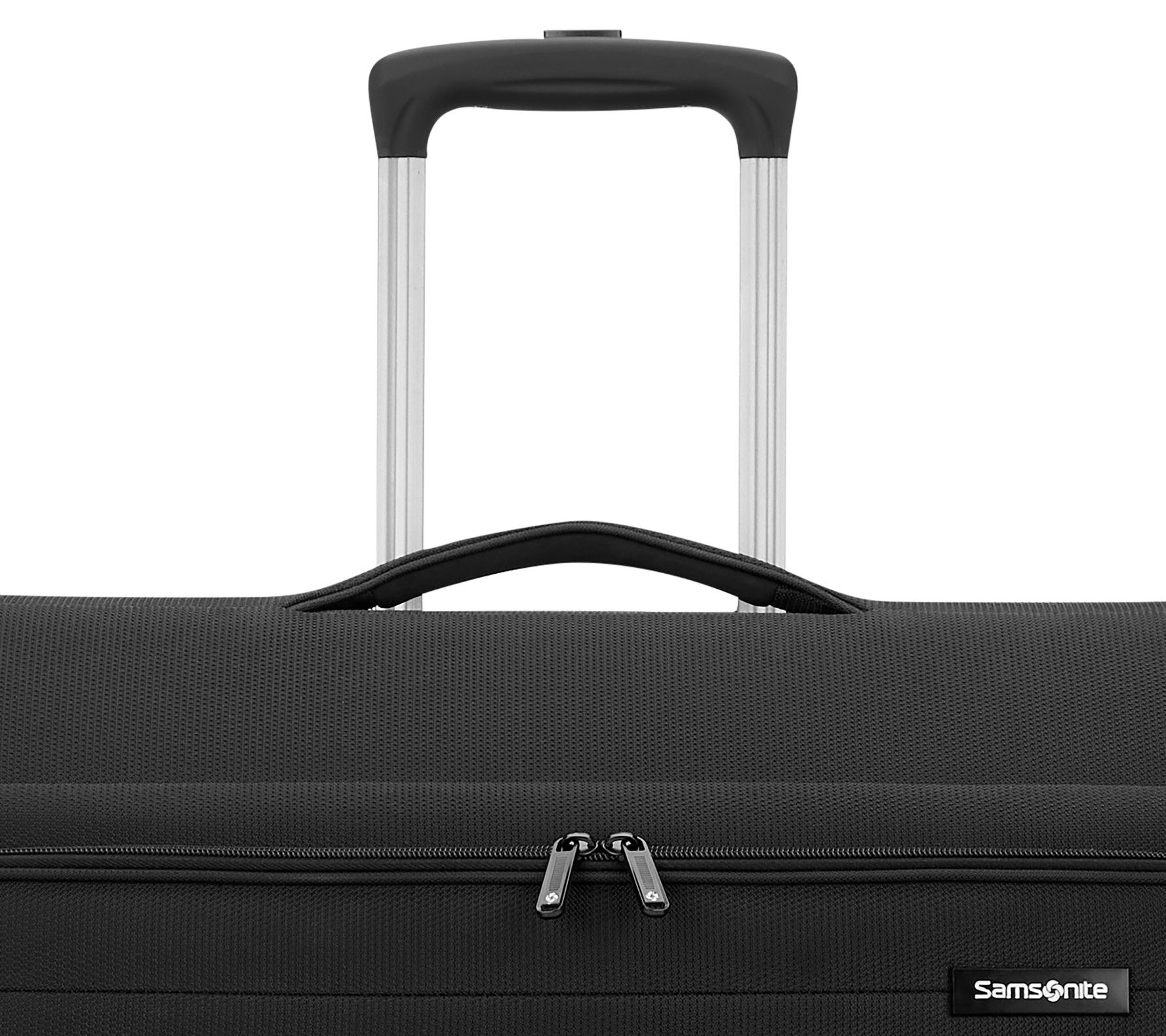 Safely stow all your travel necessities inside this spacious suitcase that features a WetPak toiletry bag, retractable ID tag, and dedicated mesh pockets for shoes and general organization. From Samsonite.
