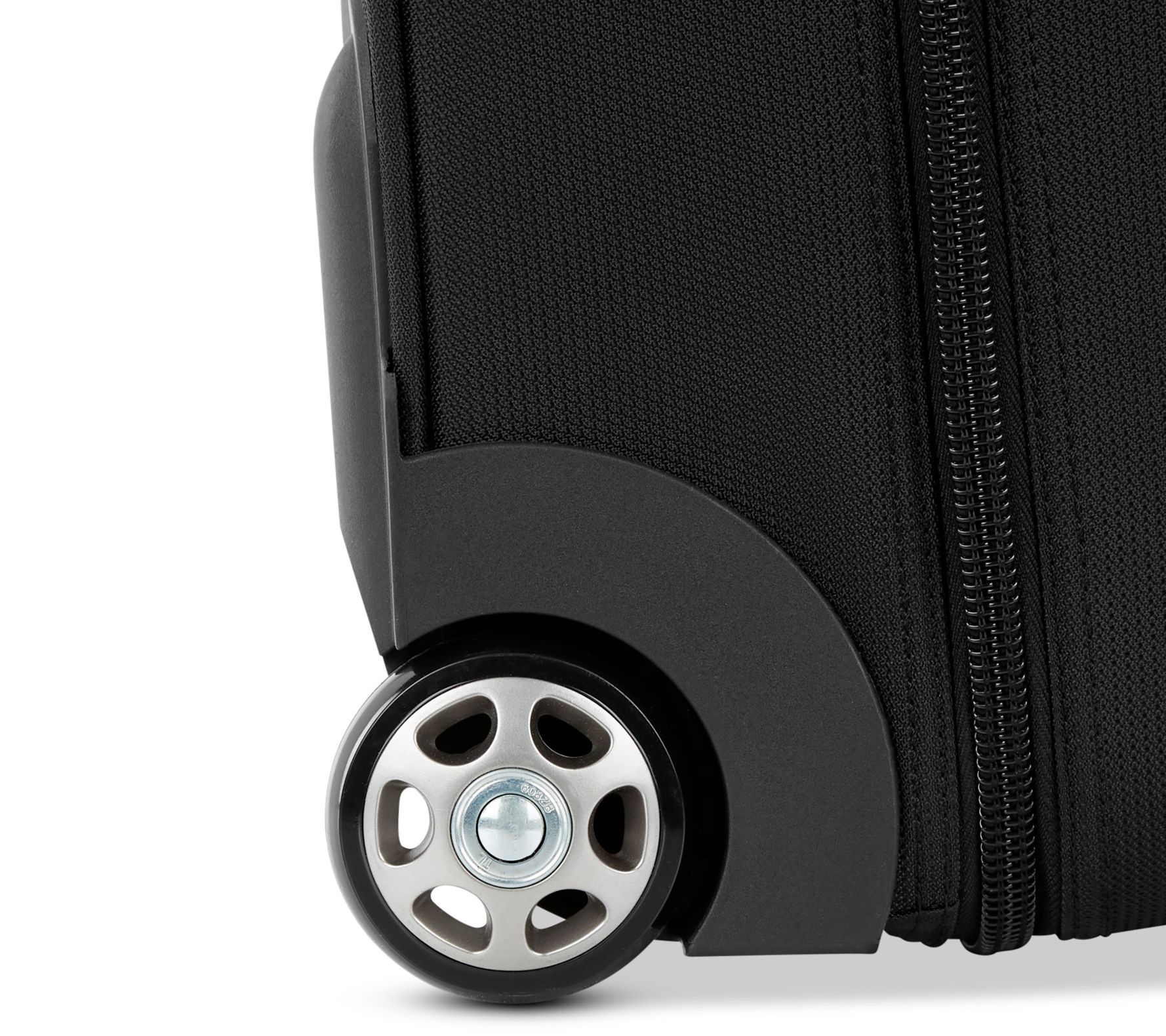 • Polyester lining, WetPak toiletry pocket, extender panel, three organizational mesh pockets, two mesh pockets for shoes