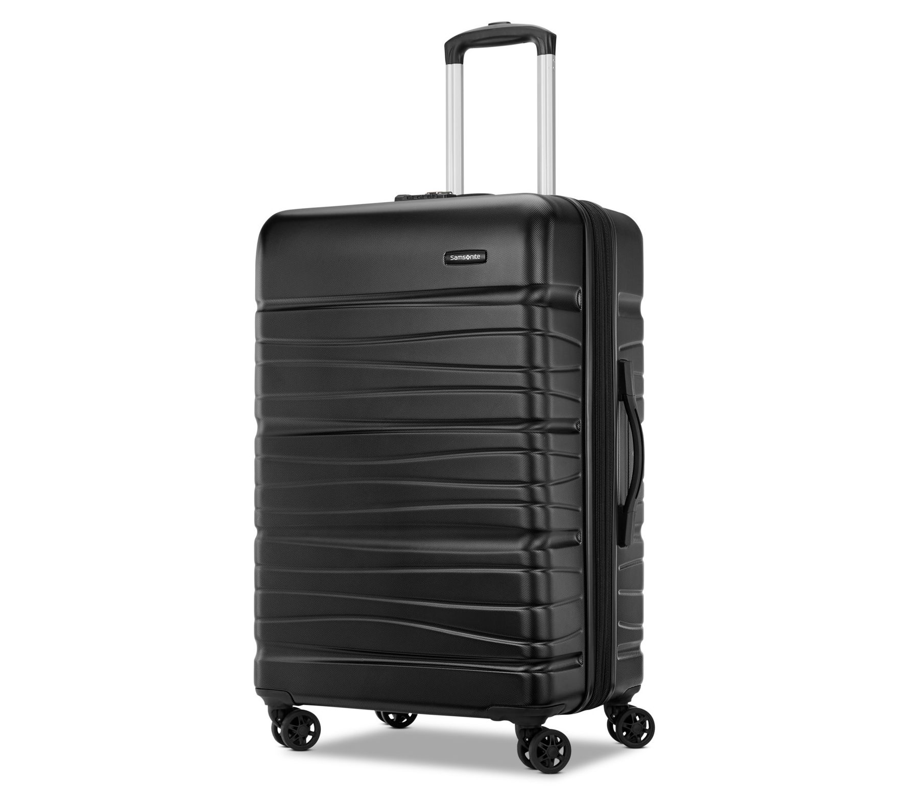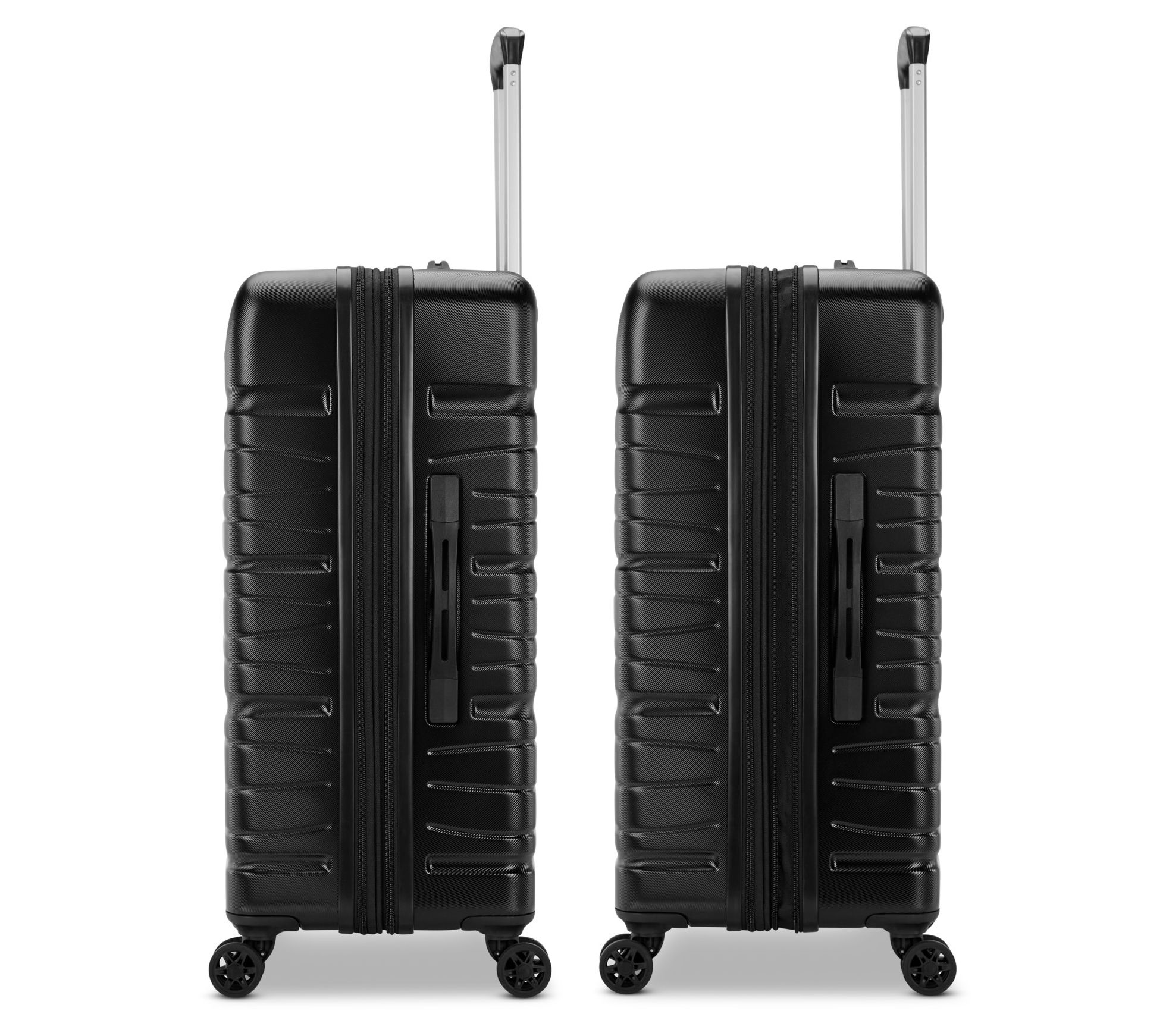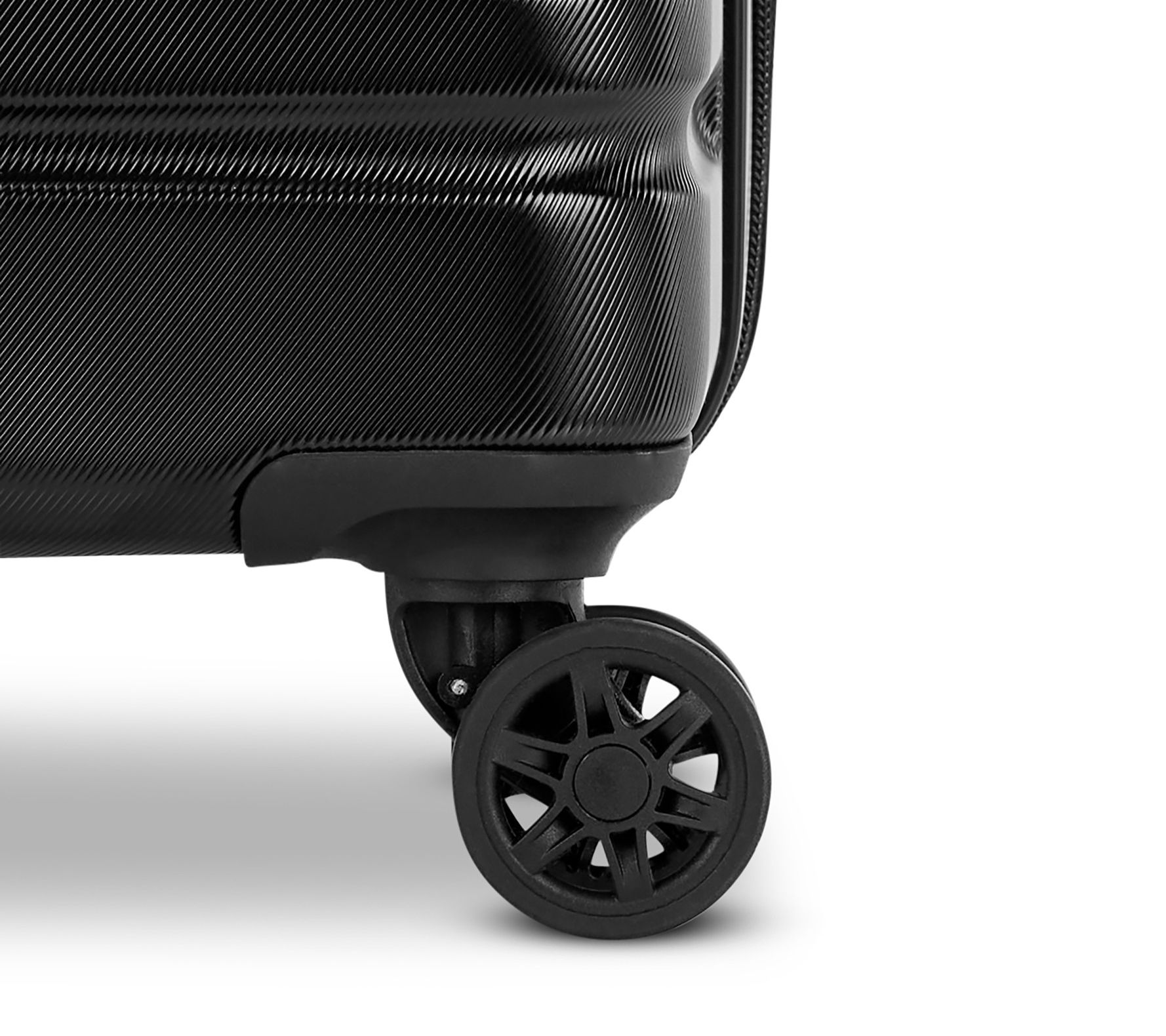 • Hardside ABS and polycarbonate exterior, zip closure, four 360-degree double spinner wheels, push-button multi-stage handle system