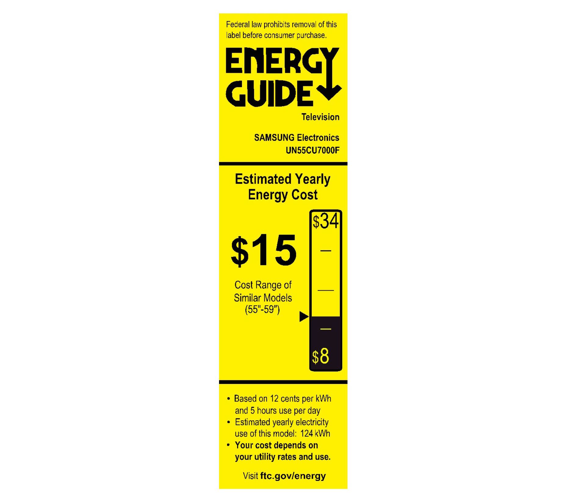 Includes UN55CU7000 LED 4K Crystal TV with SolarCell remote, stand, and power cable