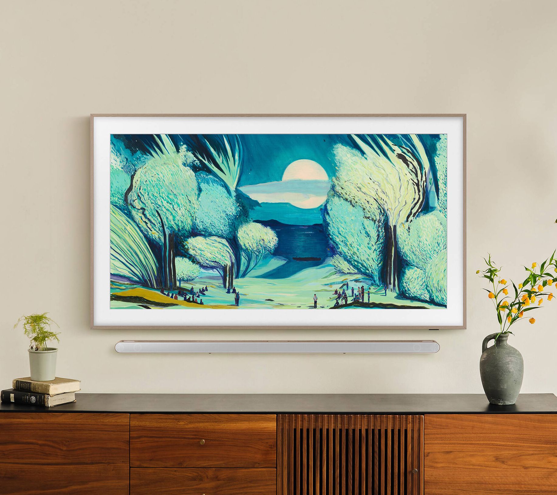 Includes 2025 Frame Series QLED 4K TV with remote control and power cable