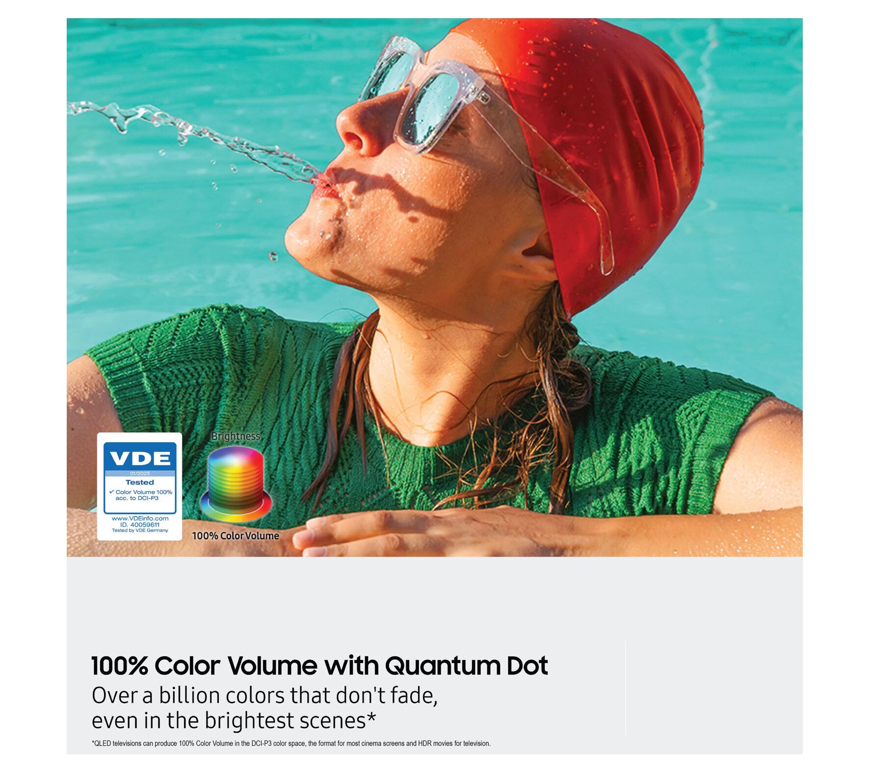Refine your entertainment experience with the Samsung Q8F QLED 4K Smart TV. Boasting an impressive spectrum of visuals and sound, it allows you to enjoy your content in immersive 4K clarity (regardless of the source resolution). Quantom Dot technology creates breathtaking color in a billion beautiful shades, while Object Tracking Sound Lite enhances the audio experience by making it seem that sound is following the movement of objects on the screen. And gamers, listen up: Motion Xcelerator lets you experience seamless motion and improved clarity for less lag and blur. What's more, with Smart TV powered by Samsung Tizen OS and a built-in voice assistant, all your favorite must-have apps and streaming services are just a few clicks or commands away. From Samsung.