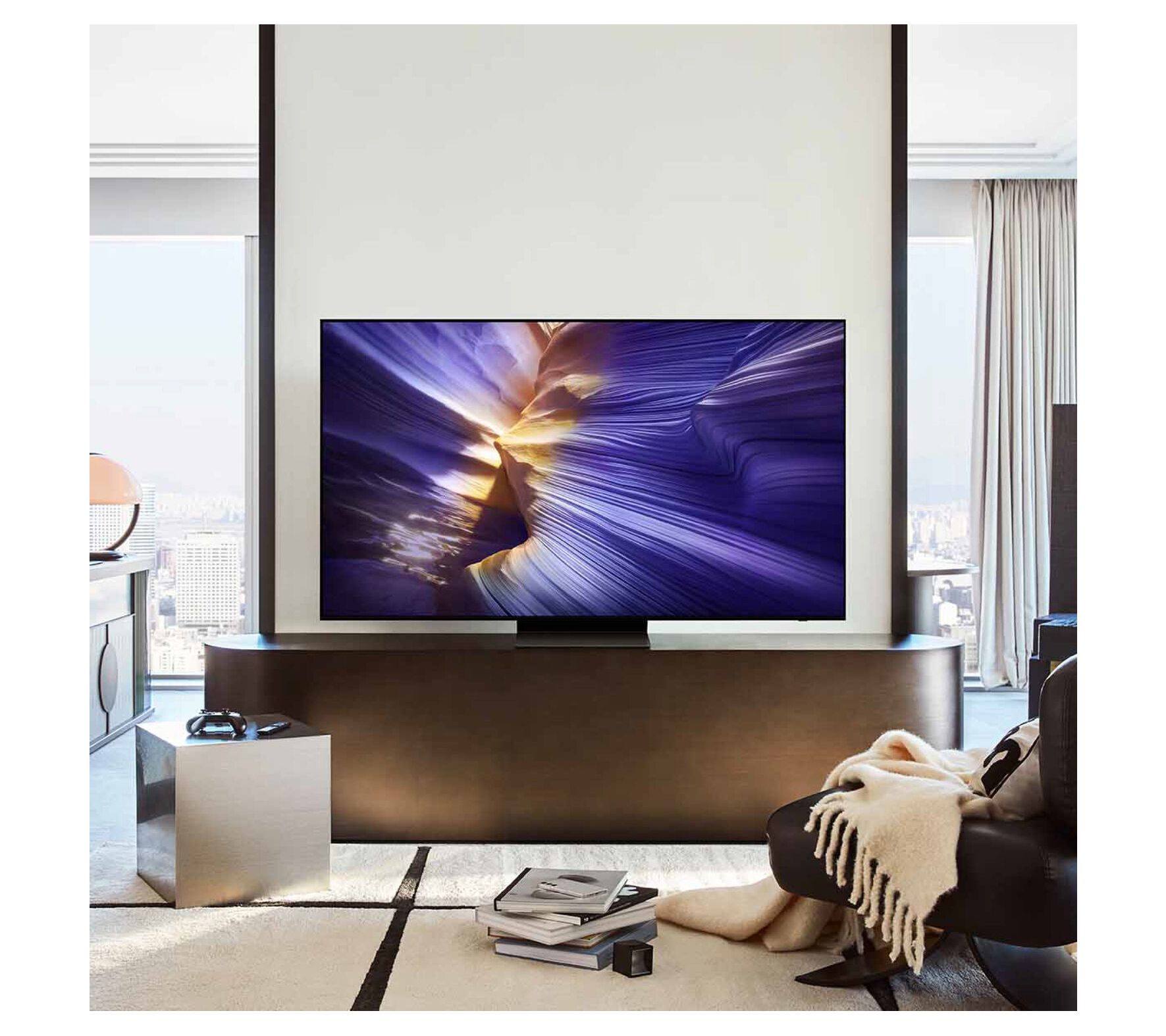 Samsung's S90 Vision AI 42" OLED Smart TV transforms your living room with striking visuals, immersive sound, and a sleek LaserSlim profile that blends beautifully with any setup. Whether you're gaming or catching up on free channels with Samsung TV Plus, the AI-enhanced processor adjusts picture and sound for an effortlessly tailored experience, letting every moment shine. From Samsung.
