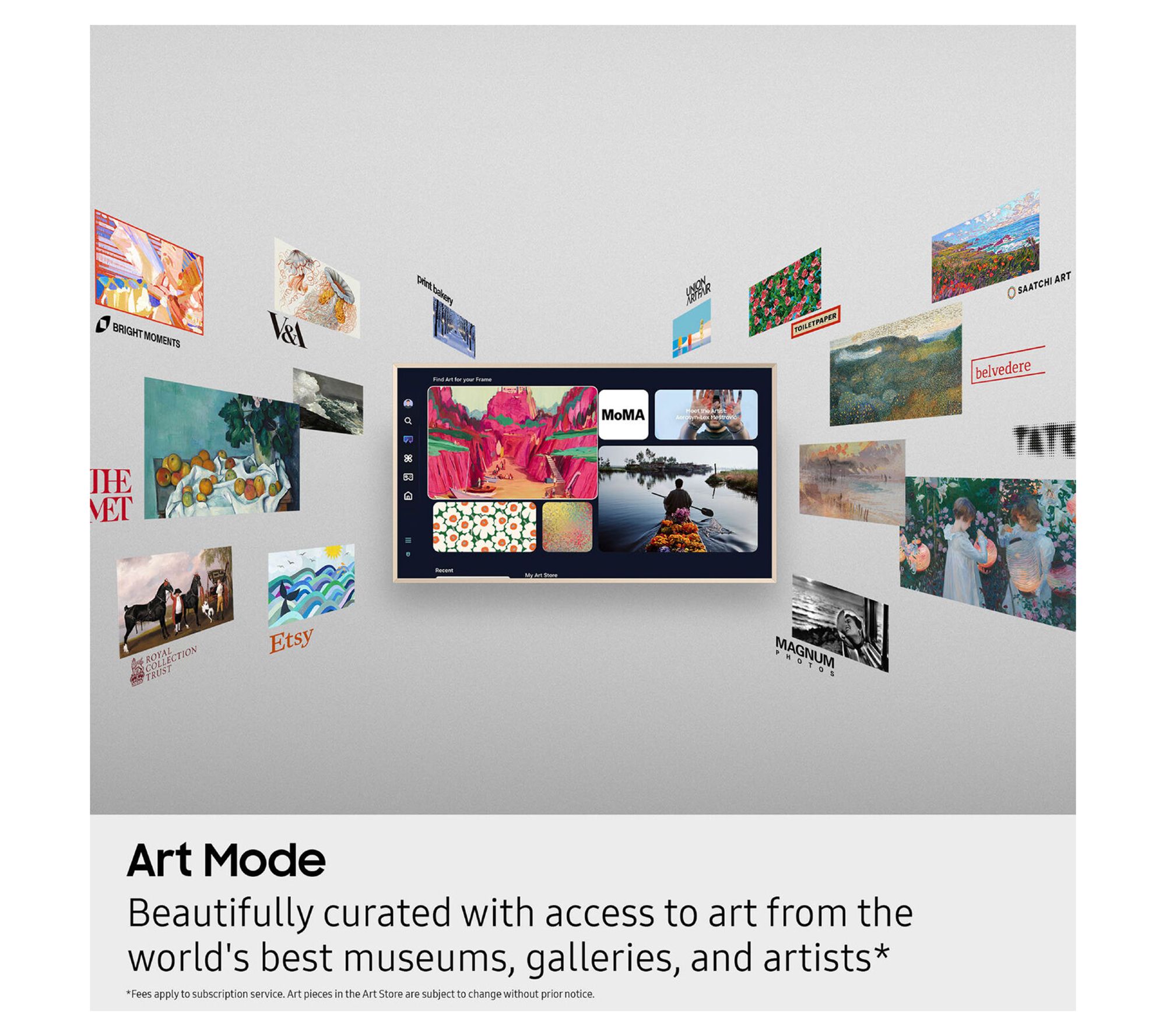 Tizen Smart TV: Samsung TV Plus, Art Mode, Art Store, Bixby, Alexa, Google Assistant, SmartThings, Apple Airplay, Google Cast, web browser, Samsung Health, ambient mode