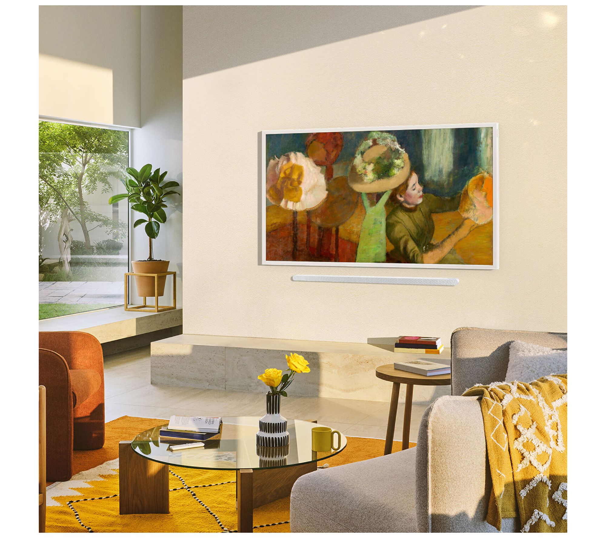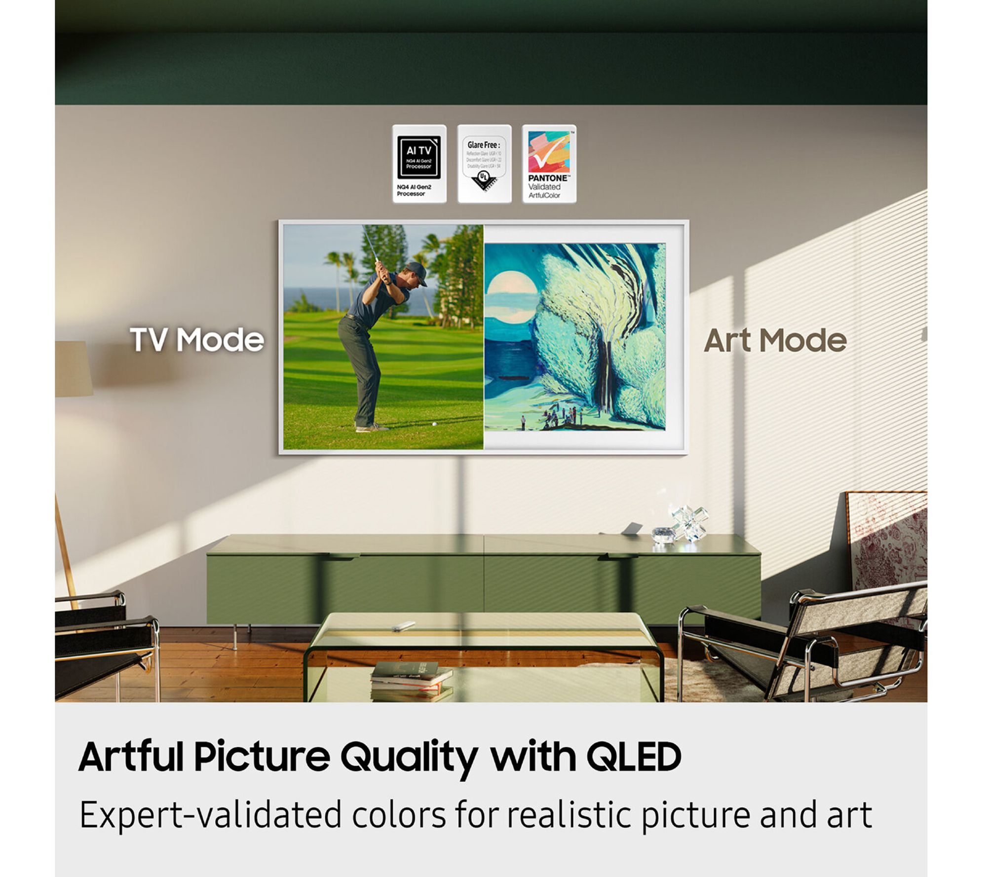 Art takes center stage when you power up the Samsung QN43LS03FAF The Frame QLED 4K Smart TV, wrapped in a gallery-inspired bezel and a matte, anti-reflection display. Movie nights feel transformed with premium QLED picture, while Art Mode lets you choose curated masterpieces or your own photos to elevate your living room between shows. Change the vibe and refresh your space in an instant. From Samsung.