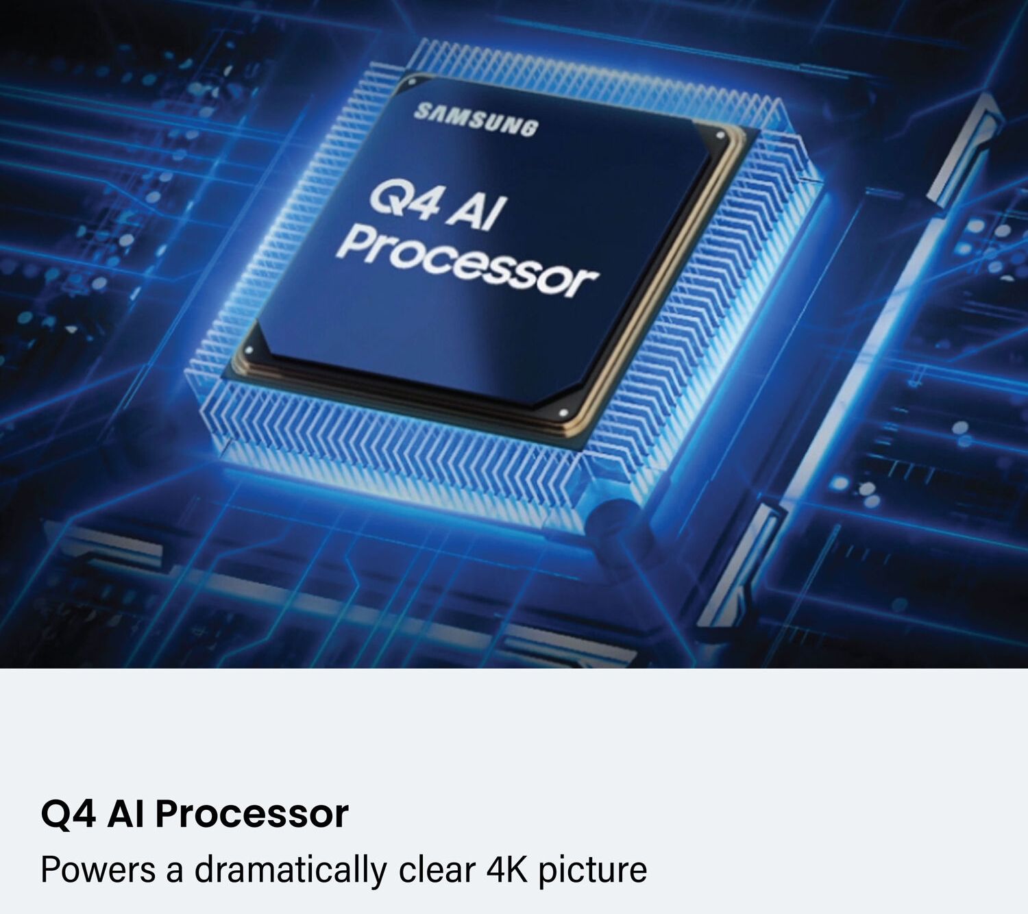 • Tizen Smart TV: Vision AI, Samsung TV Plus, SmartThings, Matter, multiple voice assistants, web browser, multi-view, Smart Home connectivity, and more