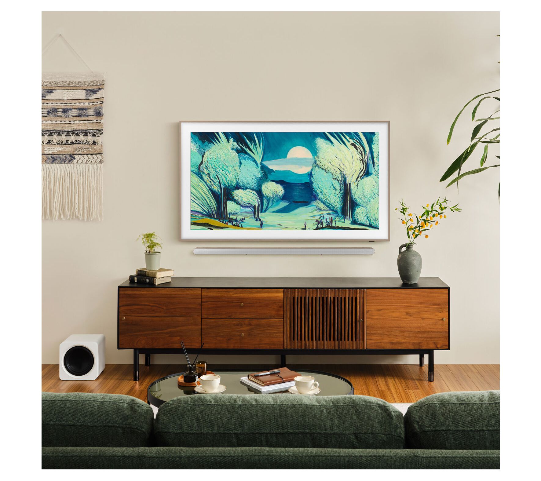 • Tizen Smart TV with SmartThings, Samsung TV Plus, multiple voice assistants, web browser