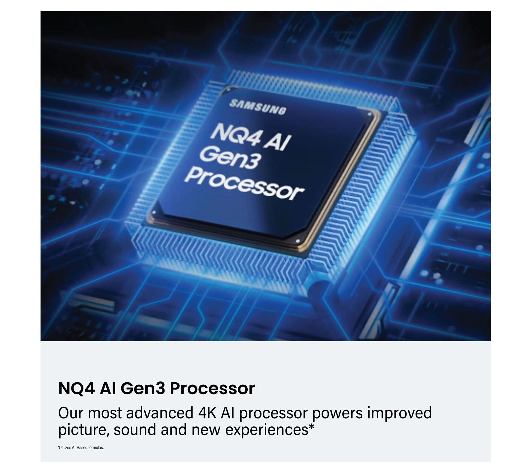 • Tizen Smart TV: Samsung TV Plus, Alexa, Bixby, Google Assistant, web browser, multi view, Apple AirPlay, SmartThings compatible, Ambient Mode+