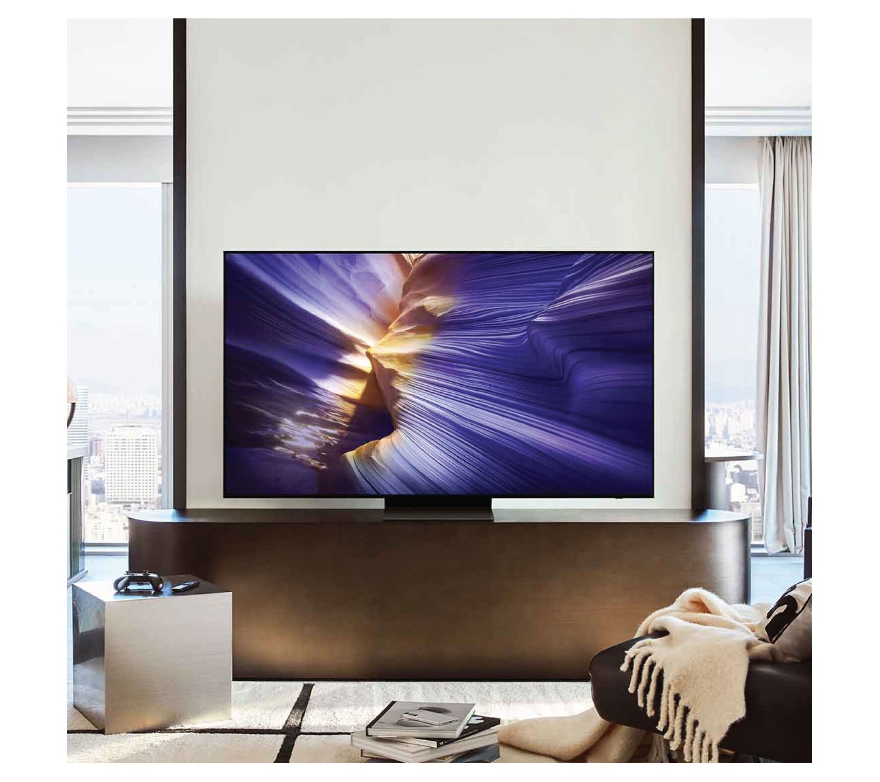 Movie nights turn epic with Samsung's S90 Series 83" OLED Smart TV, where a LaserSlim bezel and ultra-vivid 4K picture pull everyone into the action. Effortlessly catch every detail of your favorite film or game while enveloped in cinematic Dolby Atmos audio. With intelligent upscaling and built-in Tizen Smart TV features, there's always something new to stream. From Samsung.
