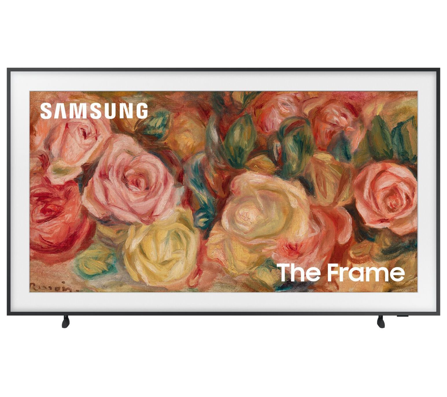 Transform any room into a gallery with the Samsung 85" Class LS03D The Frame QLED 4K TV, where art and technology meet. This innovative TV not only delivers stunning 4K resolution but also allows you to display your favorite pieces of art or personal photos in Art Mode. With its customizable frame and slim-fit wall mount, it hangs flush like a real painting, seamlessly blending with your home decor. From Samsung.