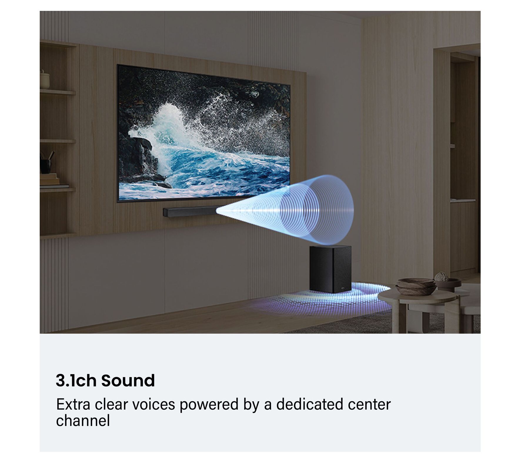3.1-channel sound with built-in center speaker