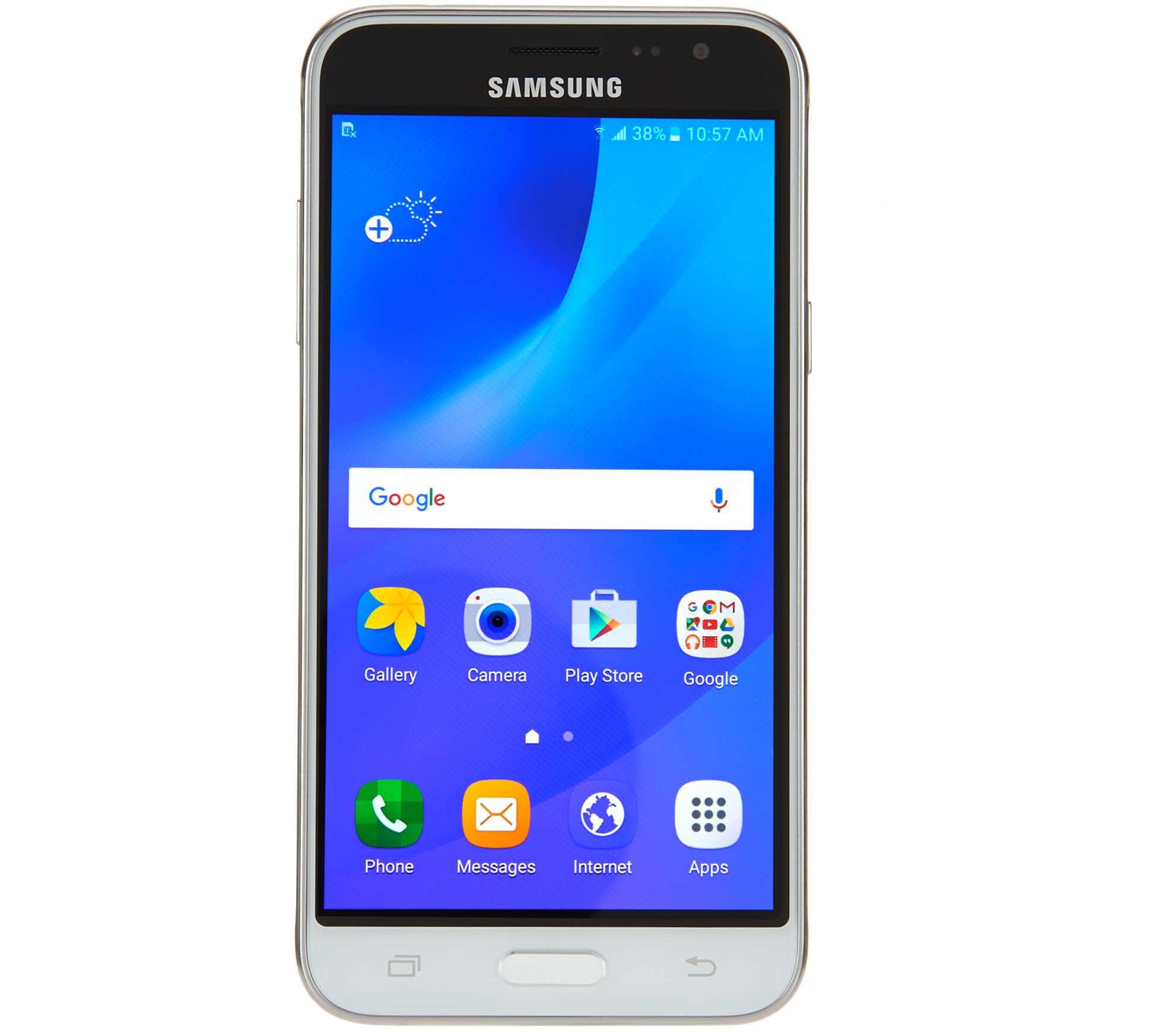 Call. Text. Email. Snap. Update. Play. You can do it all on the Samsung Galaxy J3 smartphone, which uses the intuitive Android(TM) 6.0 Marshmallow operating system to give you total control. The 5" diagonal HD display fits nicely in your hand, yet the screen is big and sharp enough for streaming videos and checking in on social media. You can even use the front or rear cameras to snap photos, so a great group shot or superior selfie is only a tap away. From Samsung.