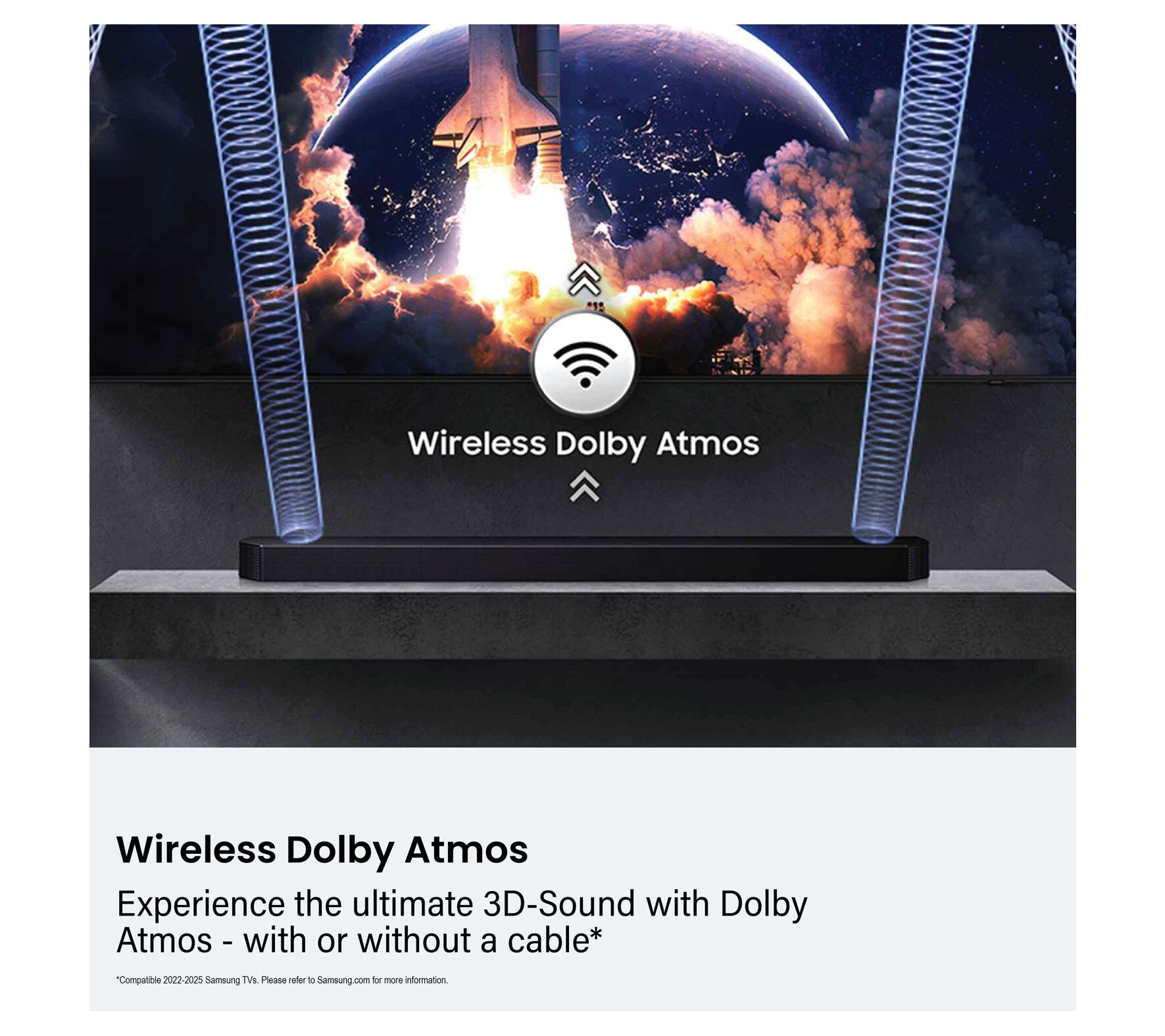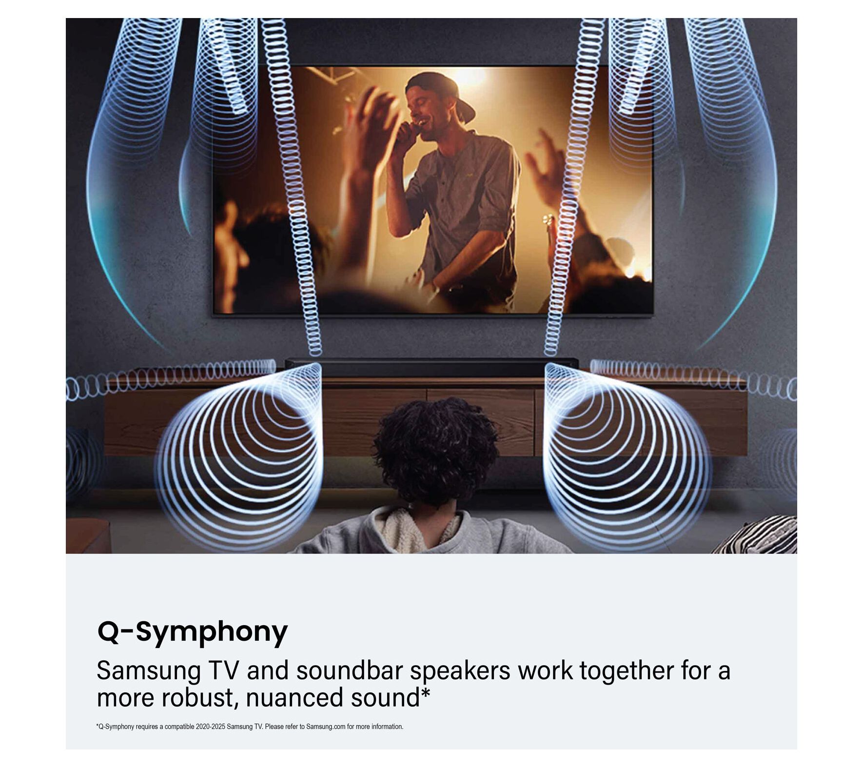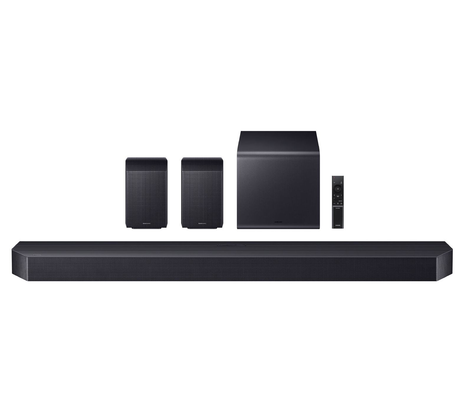 Immerse yourself in multi-dimensional surround sound when watching blockbuster movies or gaming with the Samsung Q-990 11.1.4-channel Dolby Atmos soundbar system. Delivering rich bass, adaptive audio modes, and seamless pairing with select Samsung Smart TVs, this system creates theater-like experiences right in your living room. Whether hosting friends or relaxing after a long day, let detailed sound fill your space. From Samsung.
