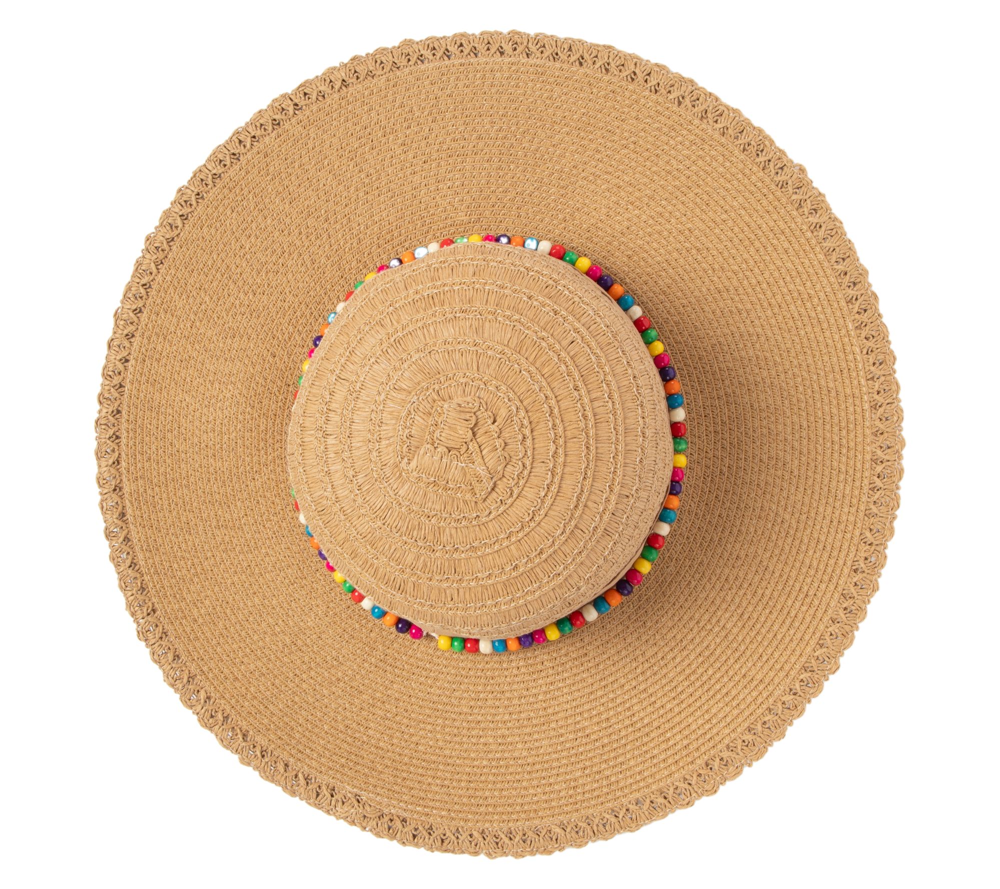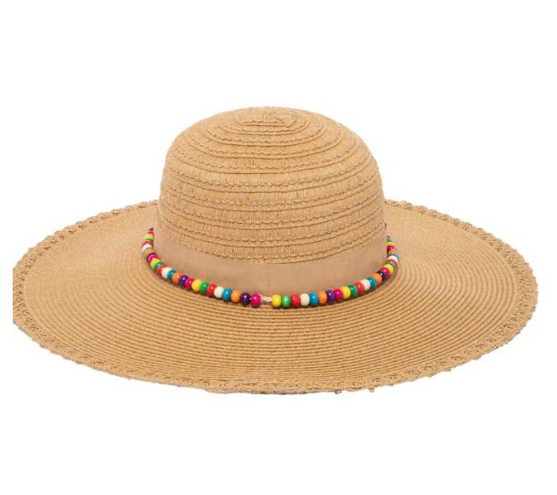 • Features: brim size 5", colorful tonal grosgrain band, wood bead chain, adjustable fit