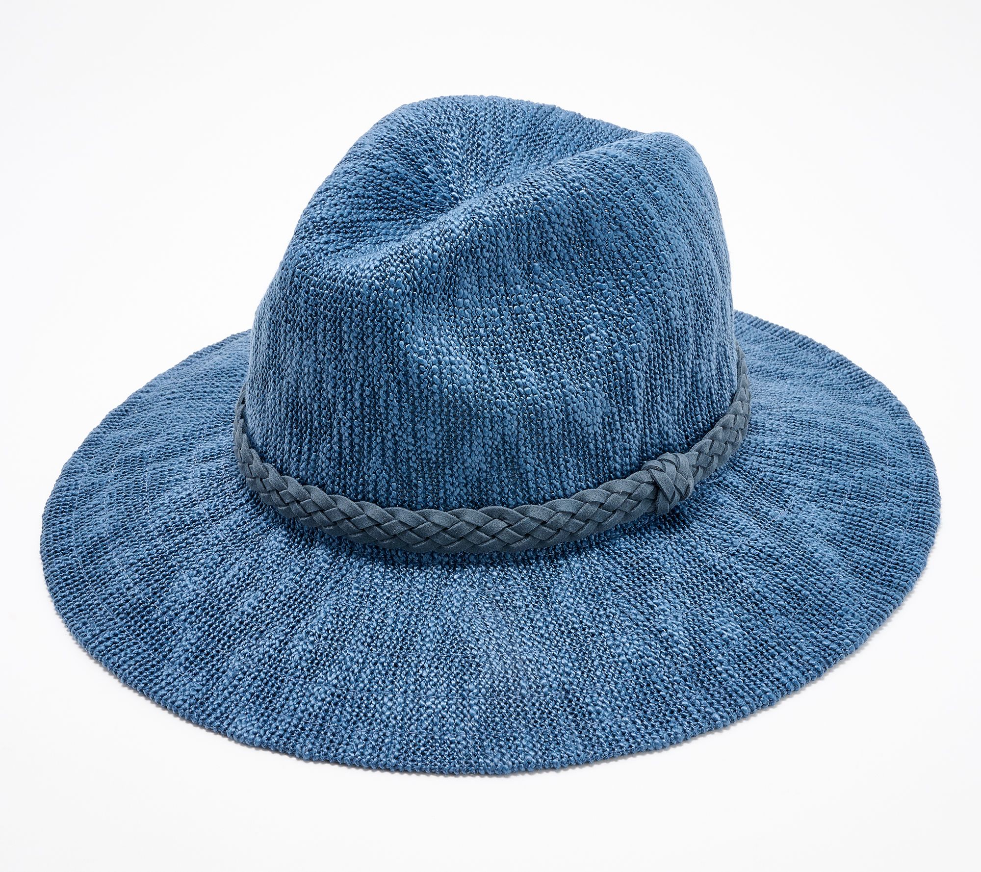 Punctuate any outfit with the smooth styling of this knit fedora hat. Accented with braided faux suede trim, the distinctive design makes a classic addition to your accessory collection. From San Diego Hat Co.