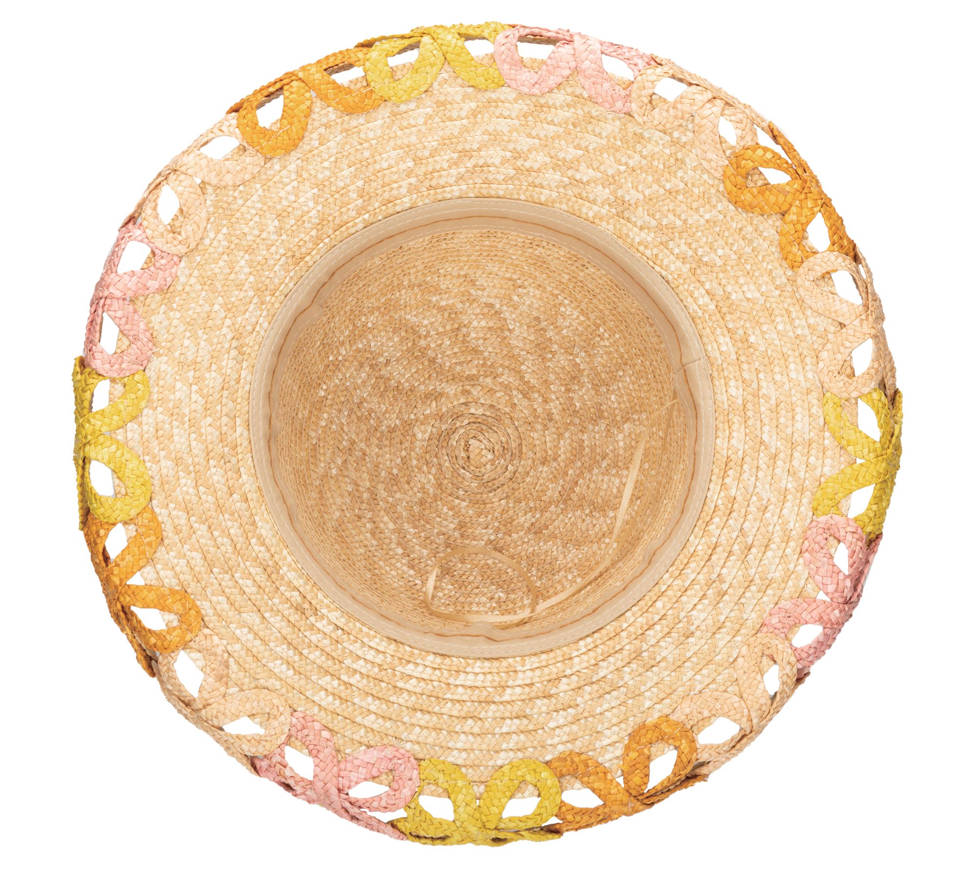 • Features: adjustable fit, open weave brim, pastel ribbon pattern