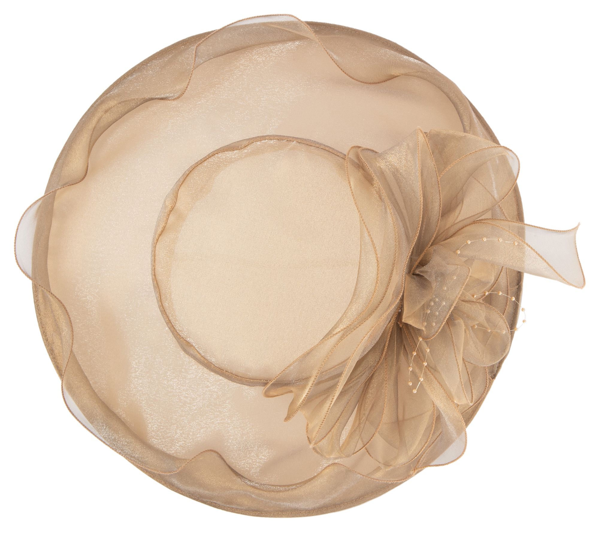 Make your entrance with vintage-inspired glam by donning this attention-stealing hat accented with airy organza and dainty pearls. From San Diego Hat Co.