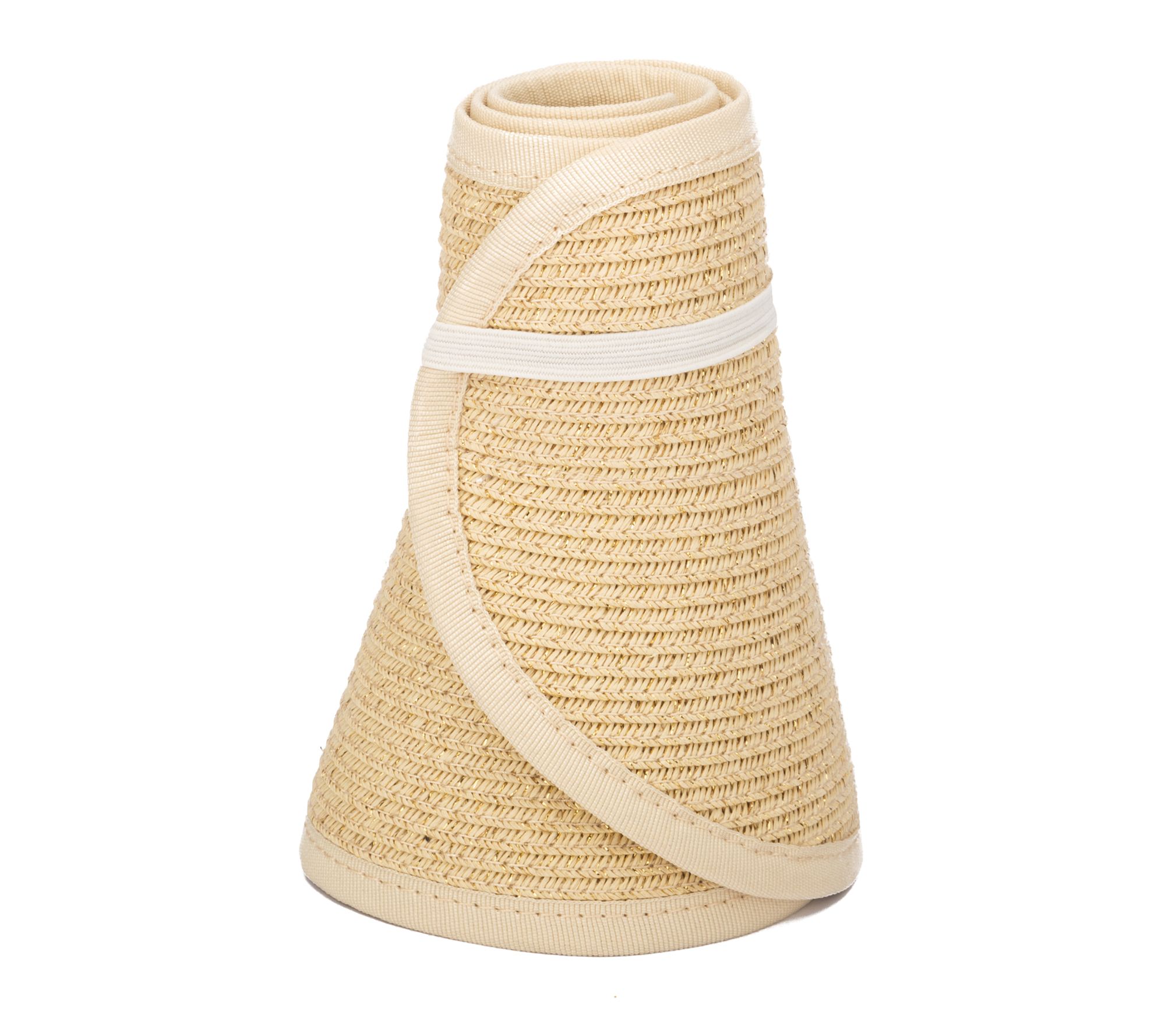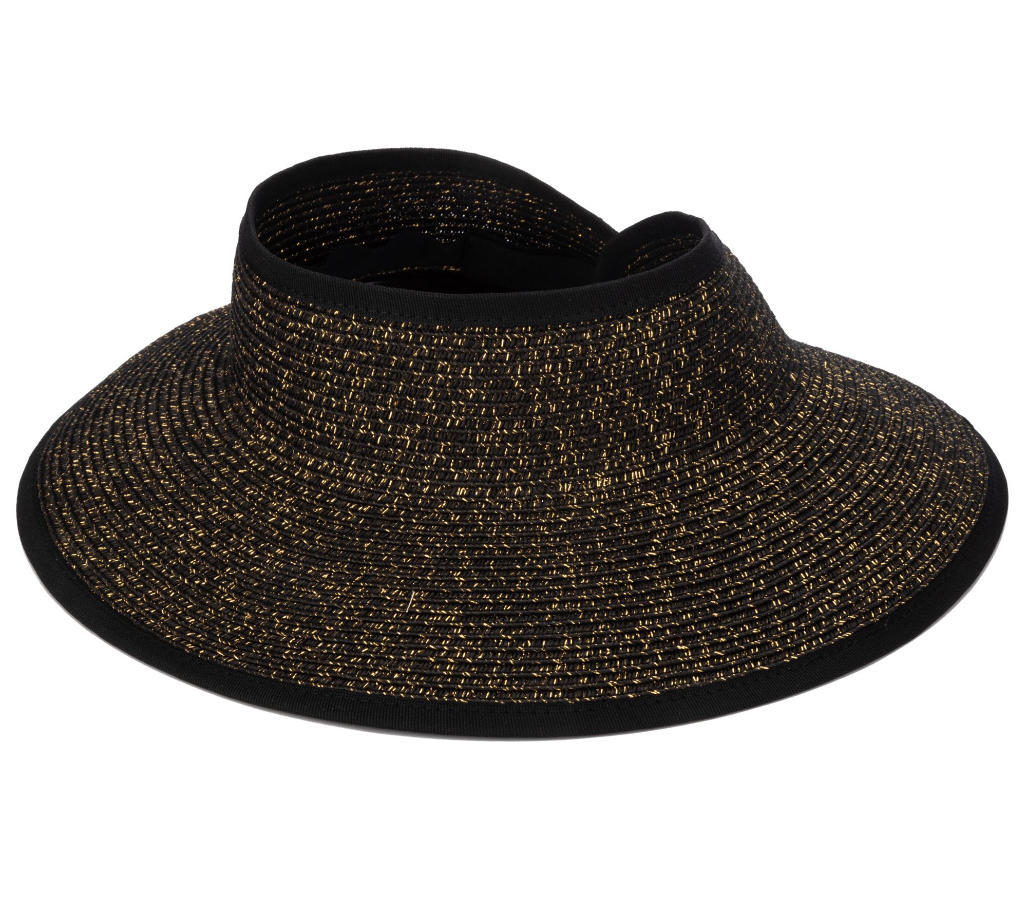 Take your stylish sun hat on the go with this fun and flirty ultrabraid mini roll-up visor, featuring just the right amount of sparkle to add shimmer to your summertime look. From San Diego Hat Co.