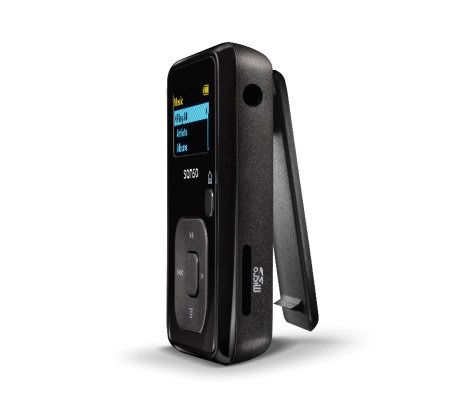 Get into the groove. Secure this Sansa Clip MP3 player to your bag, pocket, or workout pants and rock out while you're on the go. It holds 8GB of your favorite tunes. Plus, the included microSD music card comes preloaded with 1,000 songs from the 80s and 90s so you can start listening right out of the box. From SanDisk.