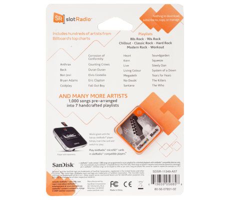 Avoid the hassle of downloading music or purchasing subscriptions with this convenient microSD card. The card is preloaded with 1000 premium songs from a specific genre from hundreds of artists from Billboard's top charts! Just insert the card into your slotRadio-compatible player, and hit play! From SanDisk.