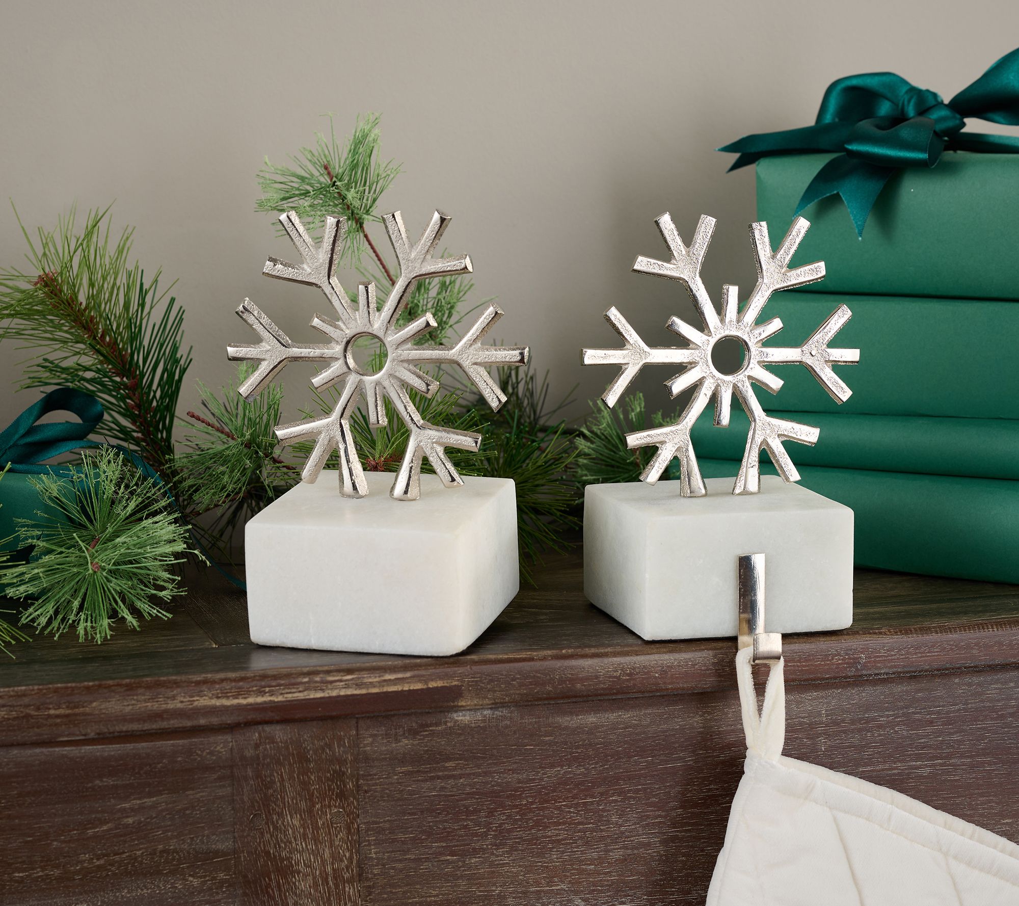 "And the stockings were hung by the chimney with care..." Give your mantel a merry makeover with this set of stocking holders. Metal holiday icons are secured to a sturdy stone base to ensure your stockings remain on display throughout the season and are ready for their festive fillings. From Sandra Lee.