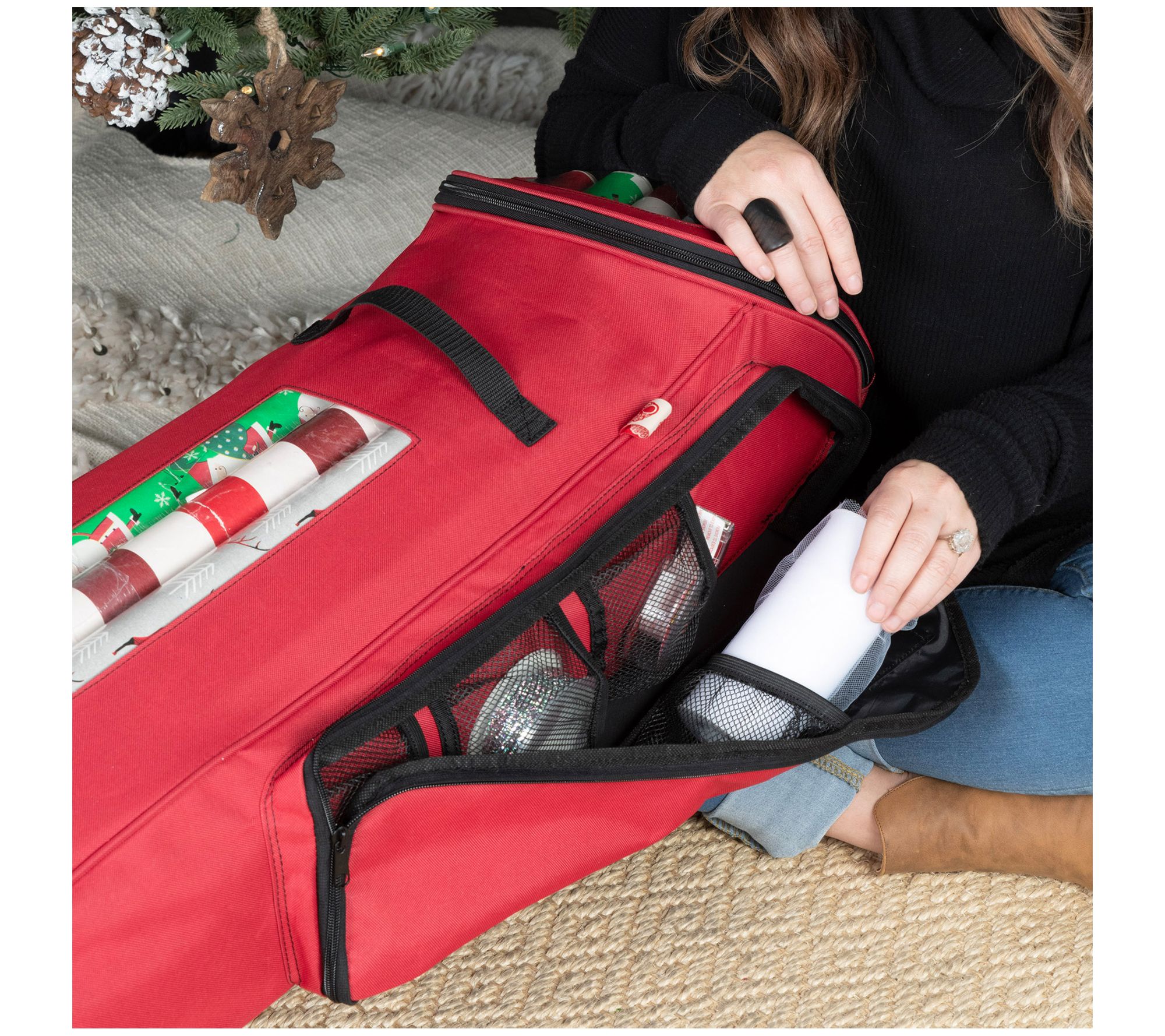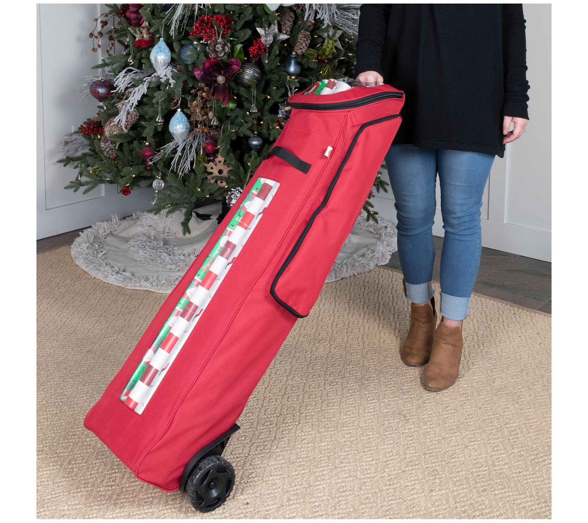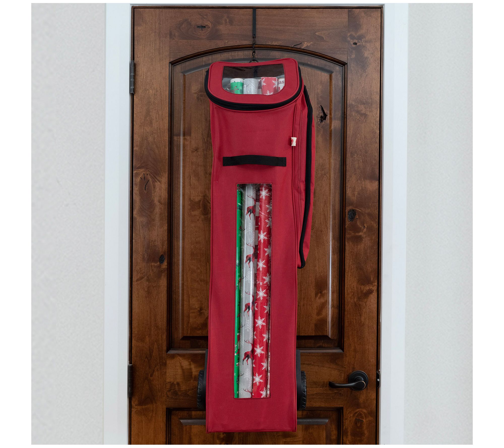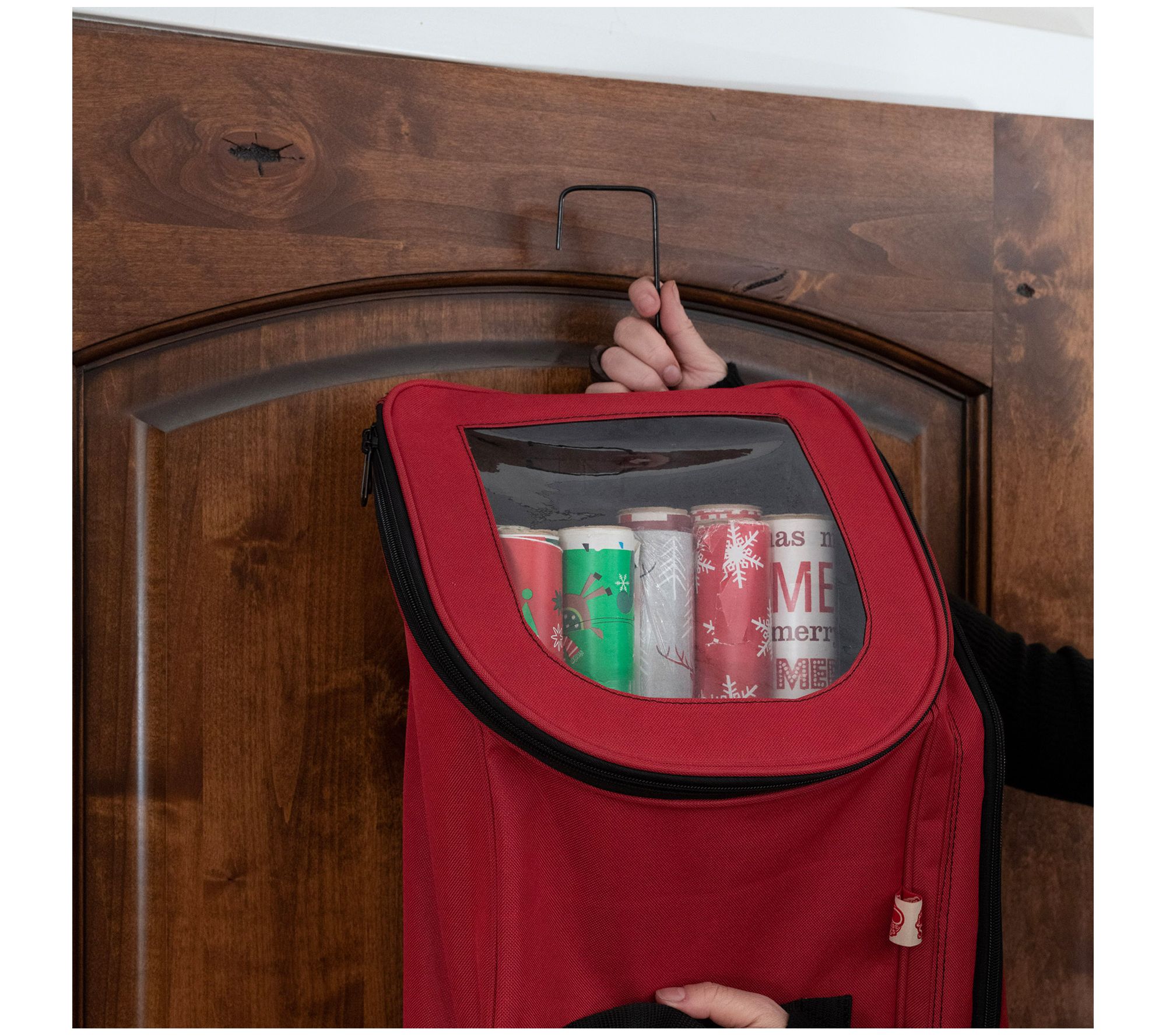 Crinkled paper, unraveled rolls, and jumbled items are a thing of the past with this handy storage bag that keeps your wrapping paper safely stored yet easily accessible. A base with wheels provides slick mobility and two clear windows allow you to see exactly what you've got stashed away. Toss your tape and scissors in the side pocket so you'll have all the requirements right at hand for a quality gift wrapping session. From Santa's Bags.