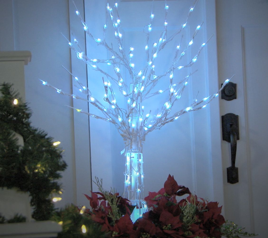 Includes 4'H tree with 150 lights, remote, 9V battery, replacement bulbs, four 6" ground stakes, and elastic straps