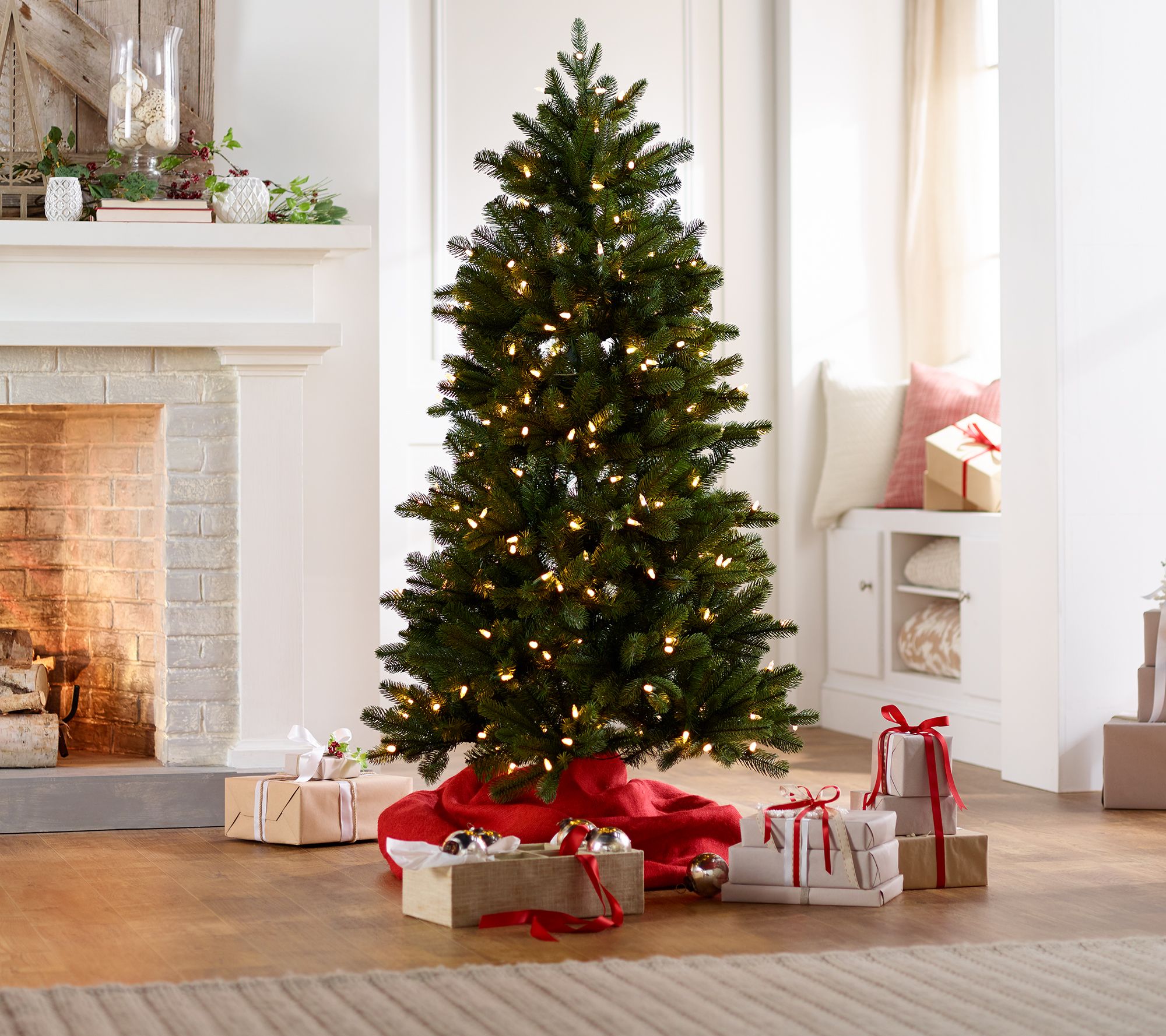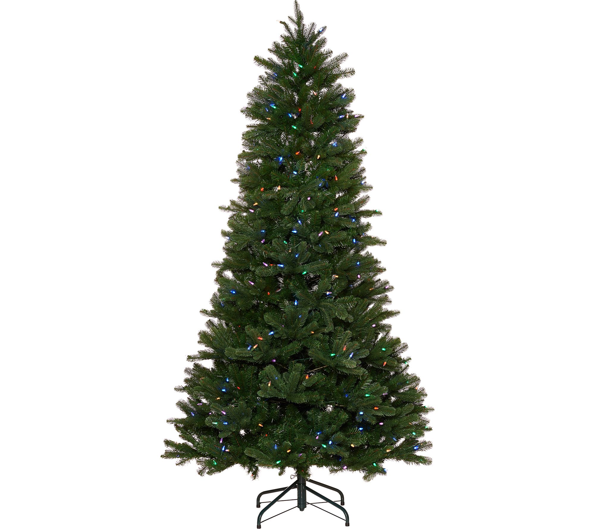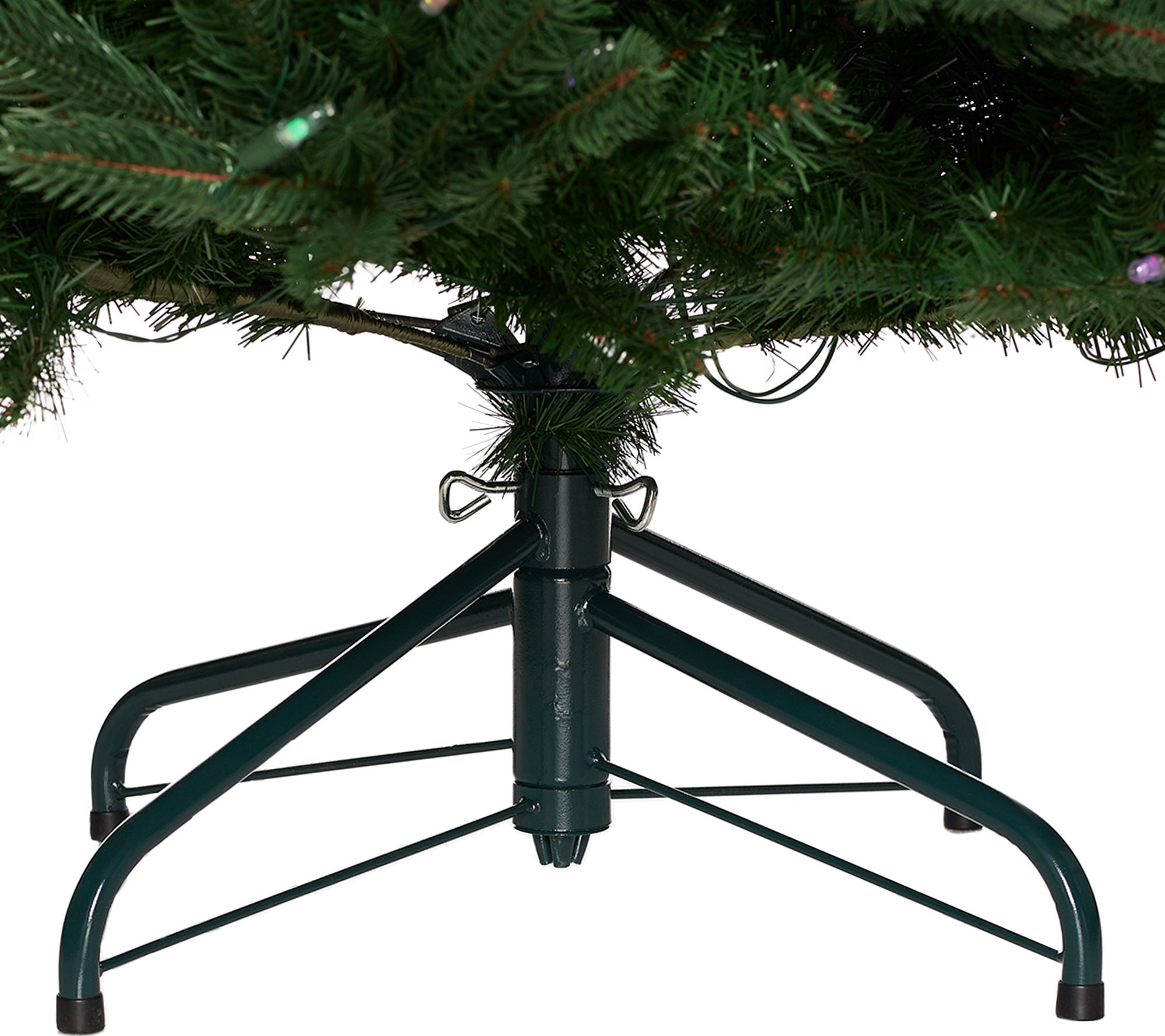 A magnificent centerpiece to your seasonal decor, this Santa's Best pre-lit Christmas tree offers lifelike green tips and 137 different lighting functions, ranging from classic holiday looks to brand-new color combinations. Its Intella technology allows for layered color customization, opening up a world of breathtaking and new light effects. And once you've found your favorite looks, you can easily save them using the included remote control, and quickly pull them back up later. From Santa's Best.