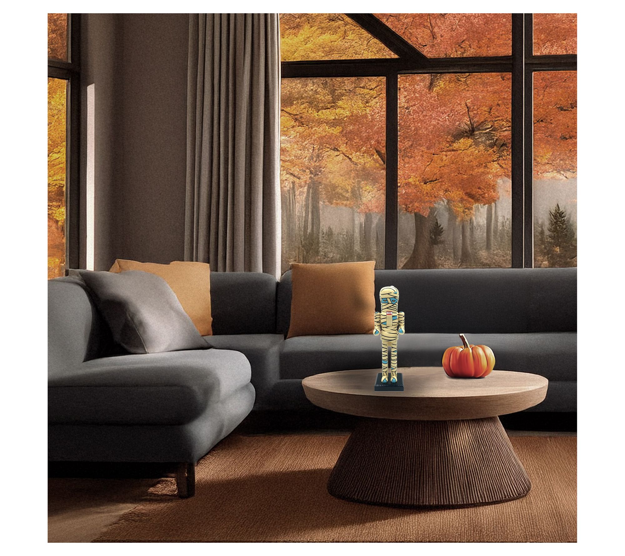 A touch of eerie charm awaits with this mummy nutcracker, freshly emerged from its ancient tomb to add some frighteningly good fun into your celebrations. Envision it as a centerpiece on your mantelpiece, captivating guests with its mysterious aura and intricate painted details. Perfect for those who dare to add a haunting twist to their seasonal decor, this character promises chills and thrills throughout your festive gatherings. From Santa's Workshop.