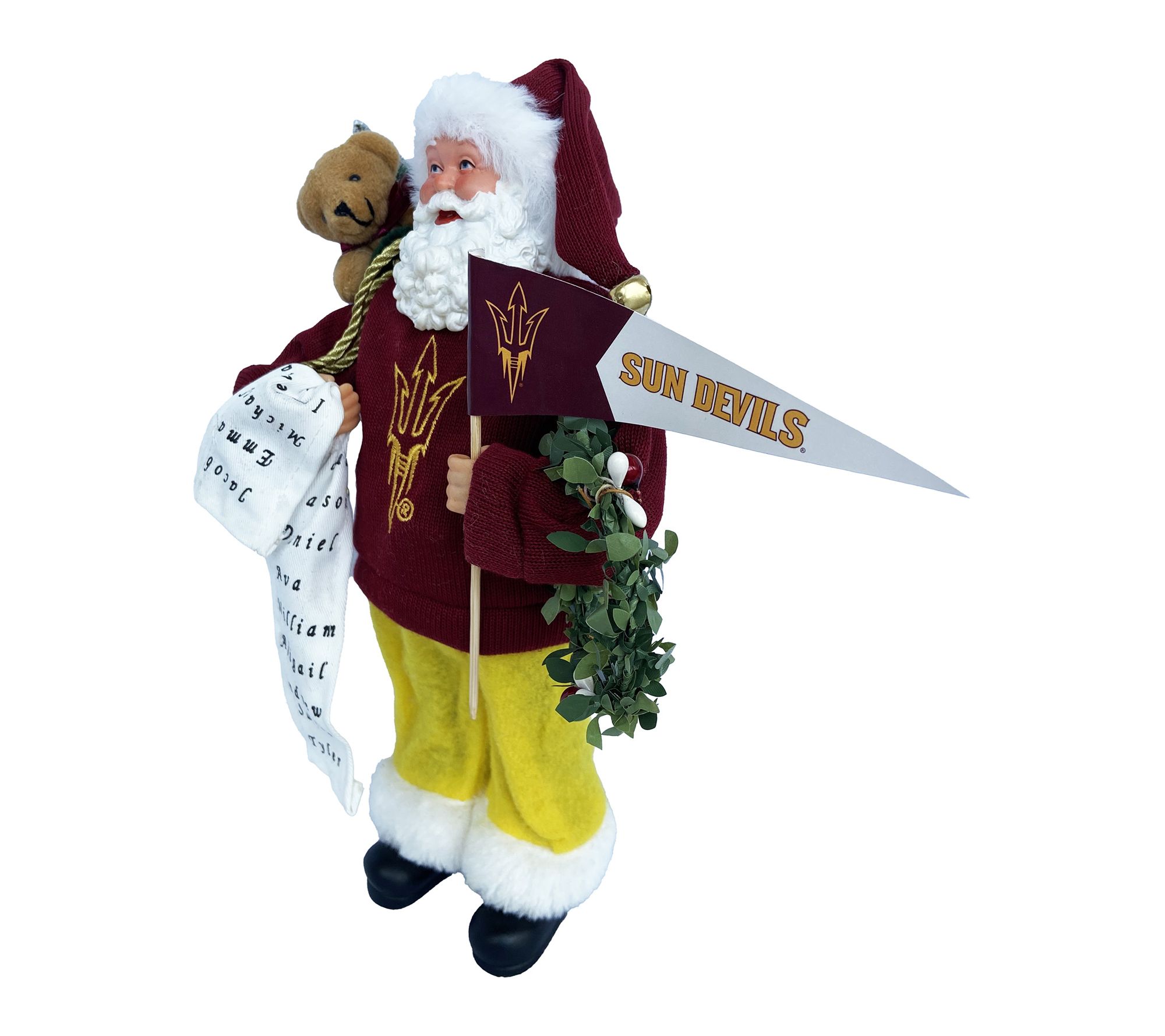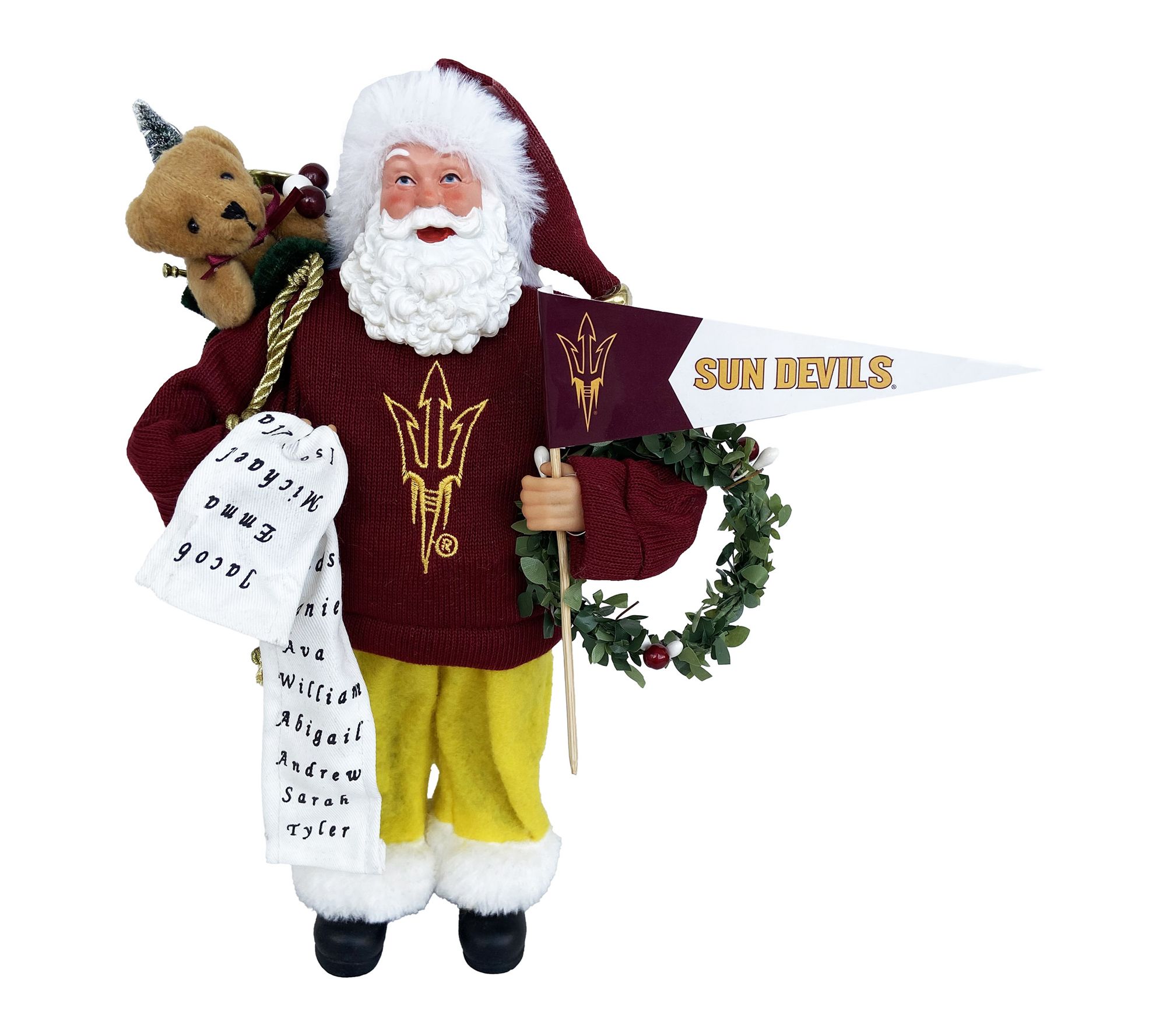 Cheering on your favorite team takes on festive flair with this NCAA Collegiate Proud Santa, dressed in spirited colors and ready to brighten your holiday decor. Place this Santa in your entryway or by the tree and let guests know who you root for all season long. A fun conversation starter for gatherings or gameday parties. From Santa's Workshop.