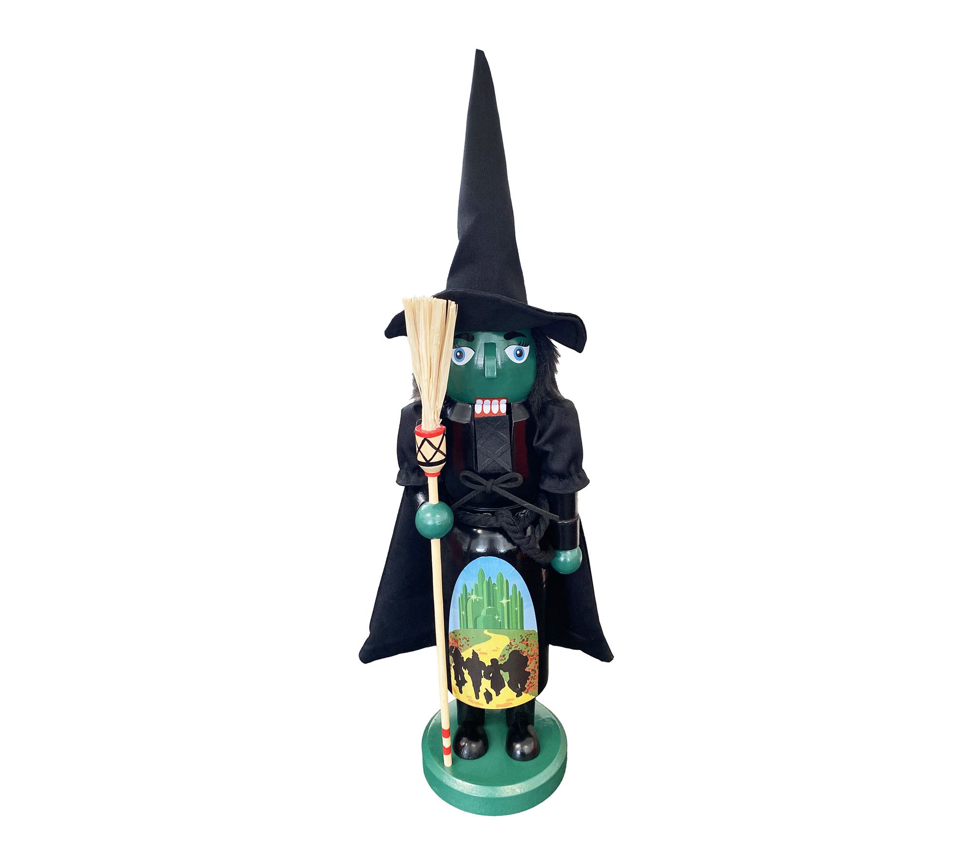 Bring an enchanting twist to your holiday decor with this 14" Wicked Witch Nutcracker. Painted in a vibrant green and dressed in a dramatic black cloak, she adds playful character to Halloween displays or themed collections. Her spellbinding style is sure to inspire smiles season after season. From Santas Workshop.