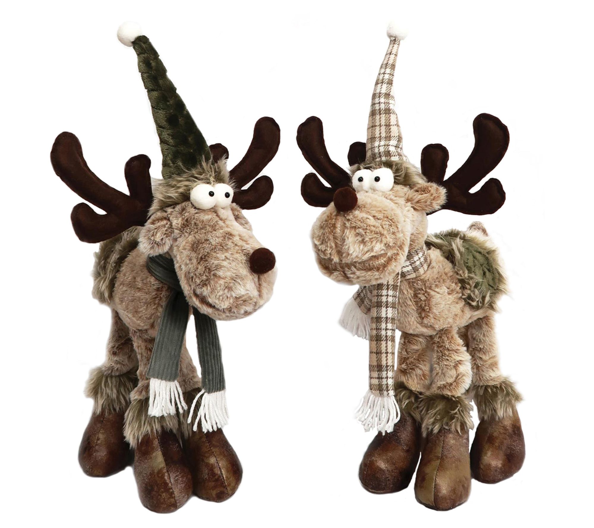 With soft, pointy hats and matching scarves, these two stylish, tall and friendly moose stand on their own, bringing charm to your holiday decor. From Santa's Workshop.