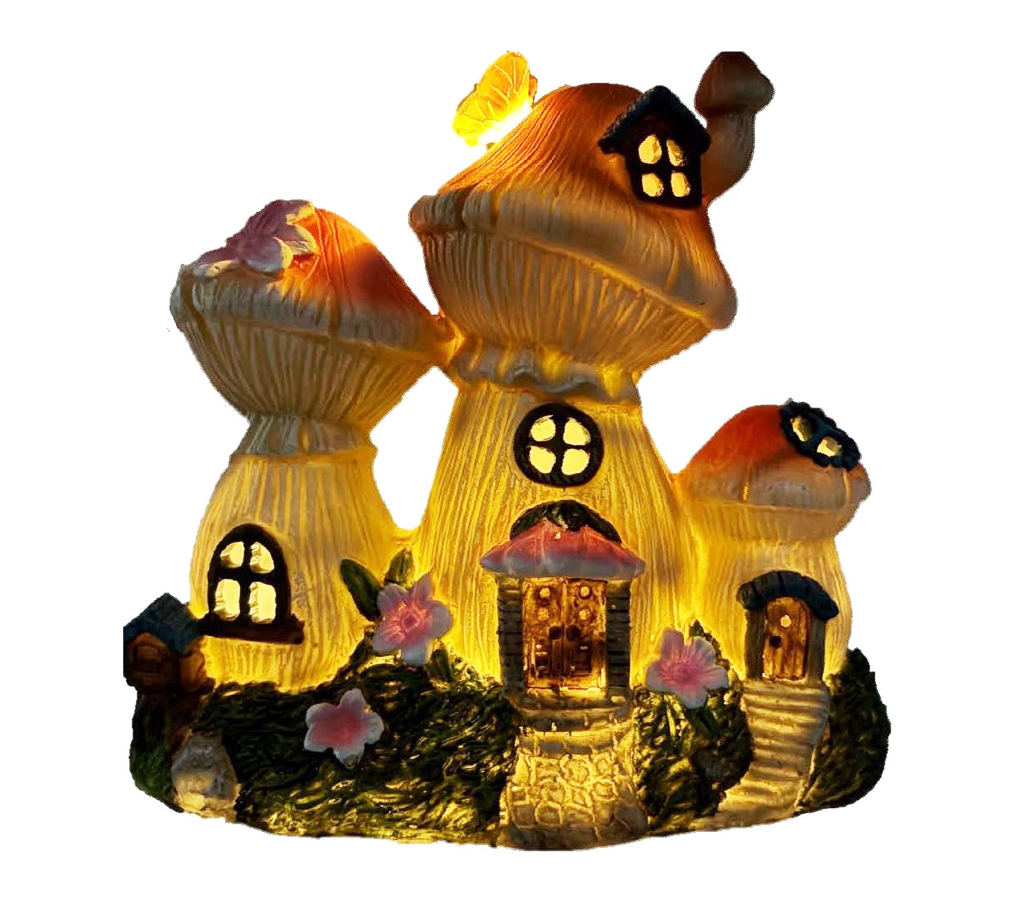 Create an enchanting focal point in your garden or patio with this resin mushroom bungalow lawn ornament. Fantasy-inspired details bring a storybook charm to outdoor spaces, making it a delightful addition to fairy gardens, terrariums, or whimsical home accents. Glowing LED light creates a cozy ambiance as dusk falls. From Santa's Workshop Inc.