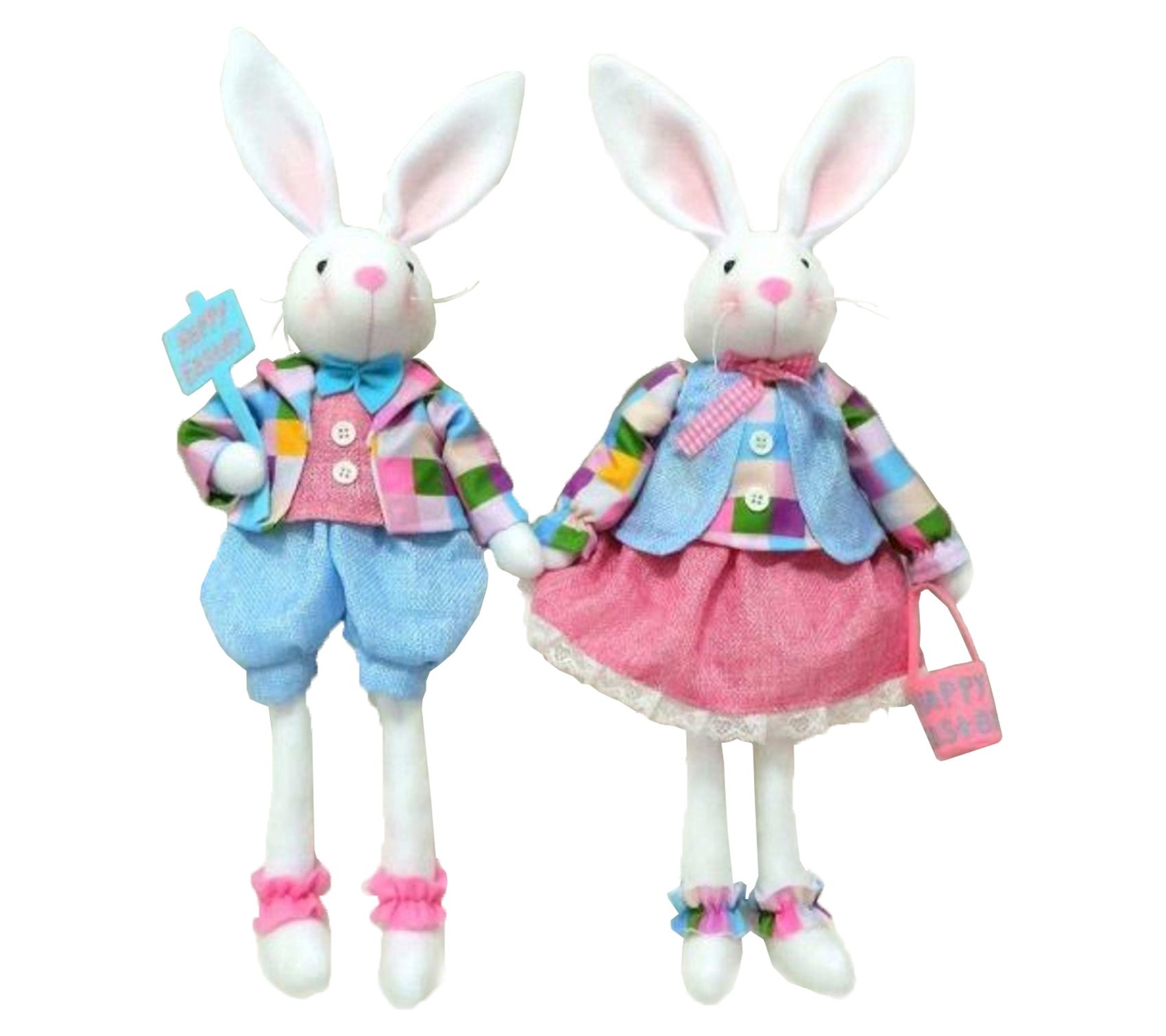 Dressed in their lovely Easter outfits, this adorable bunny couple is ready to hop through the yard looking for colored eggs before settling in on a shelf to dig into their baskets! From Santa's Workshop Inc.