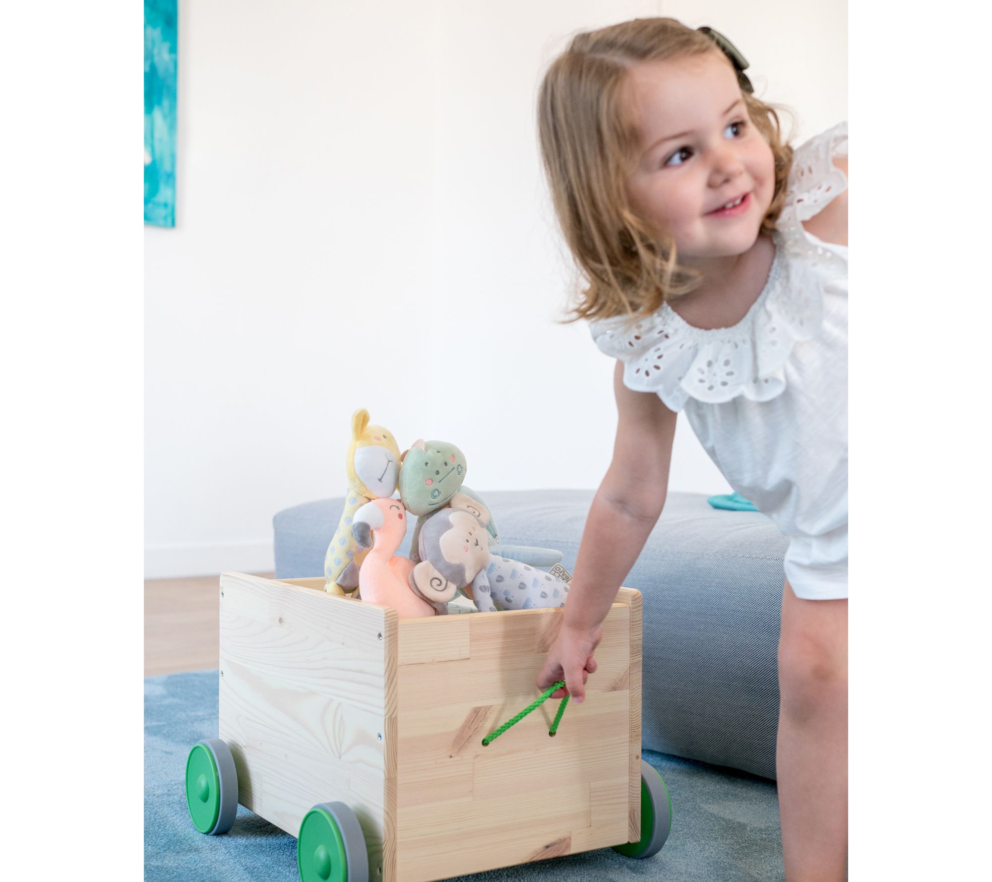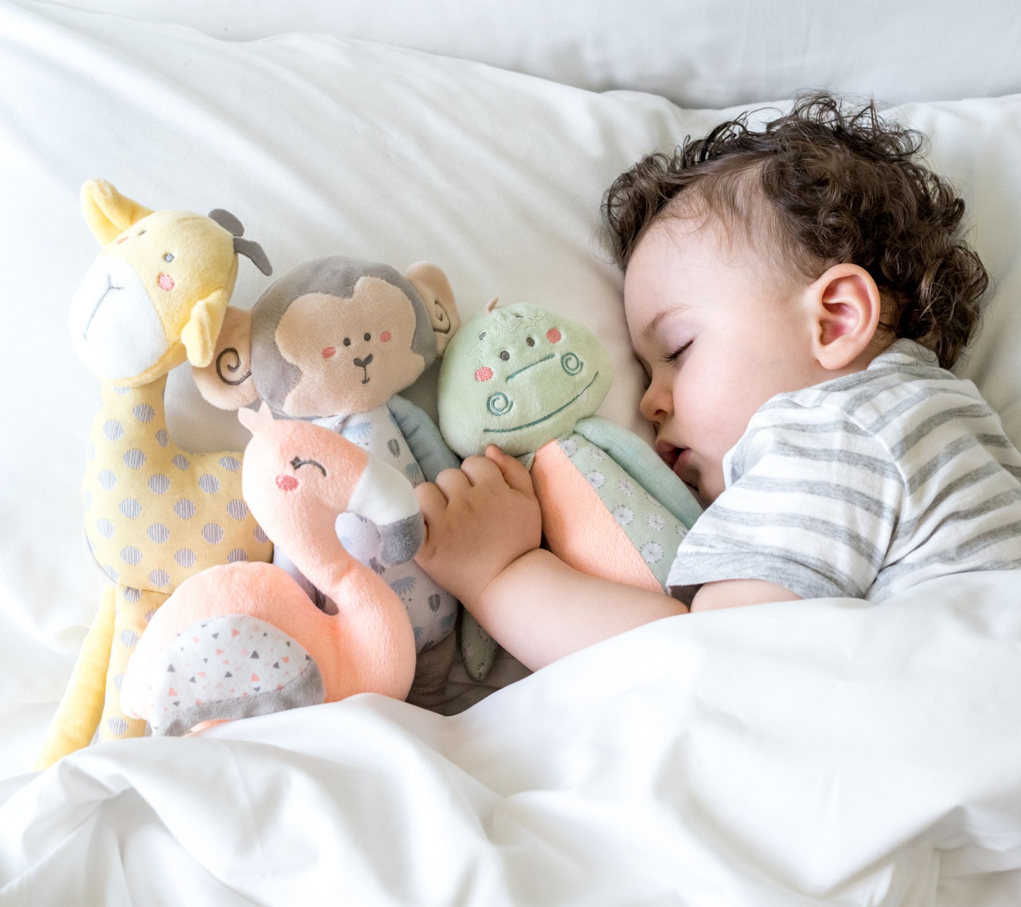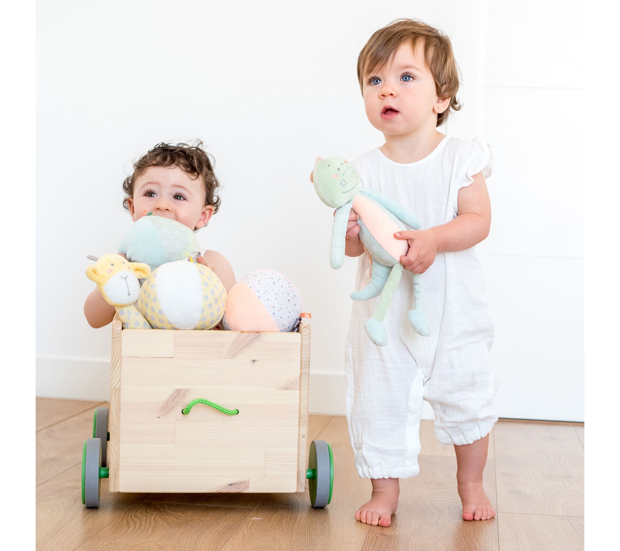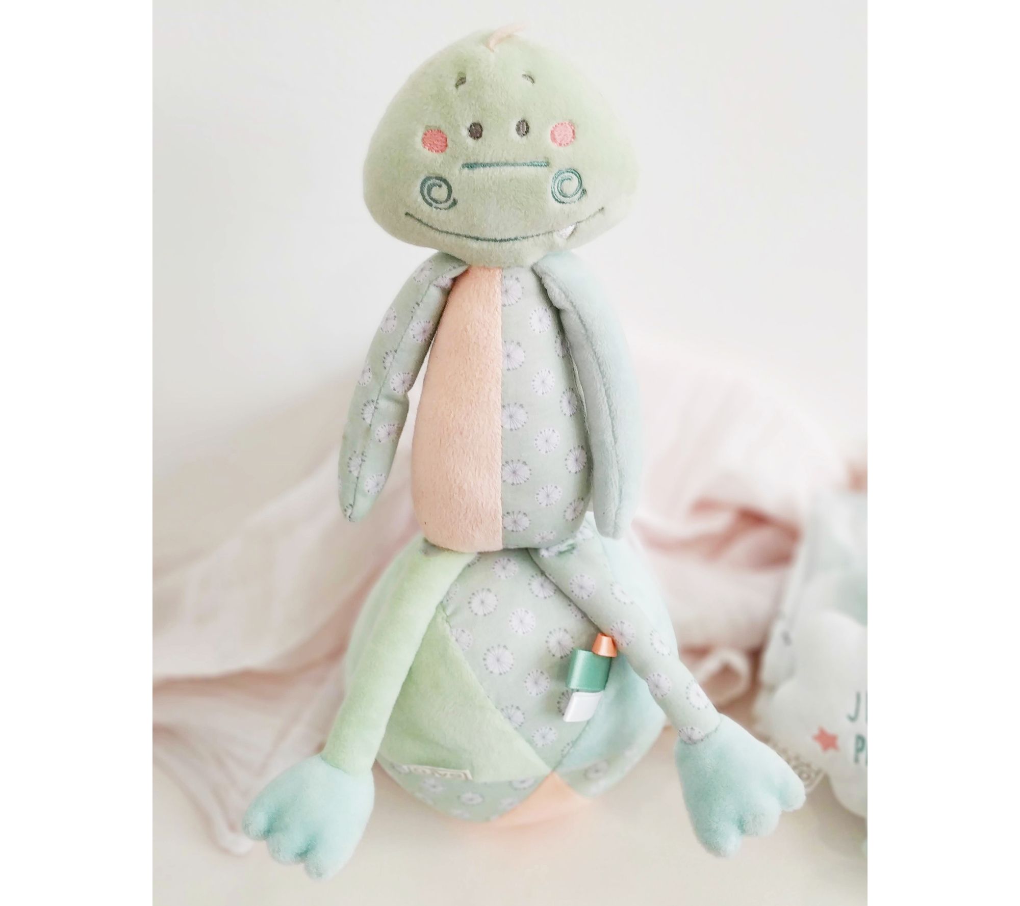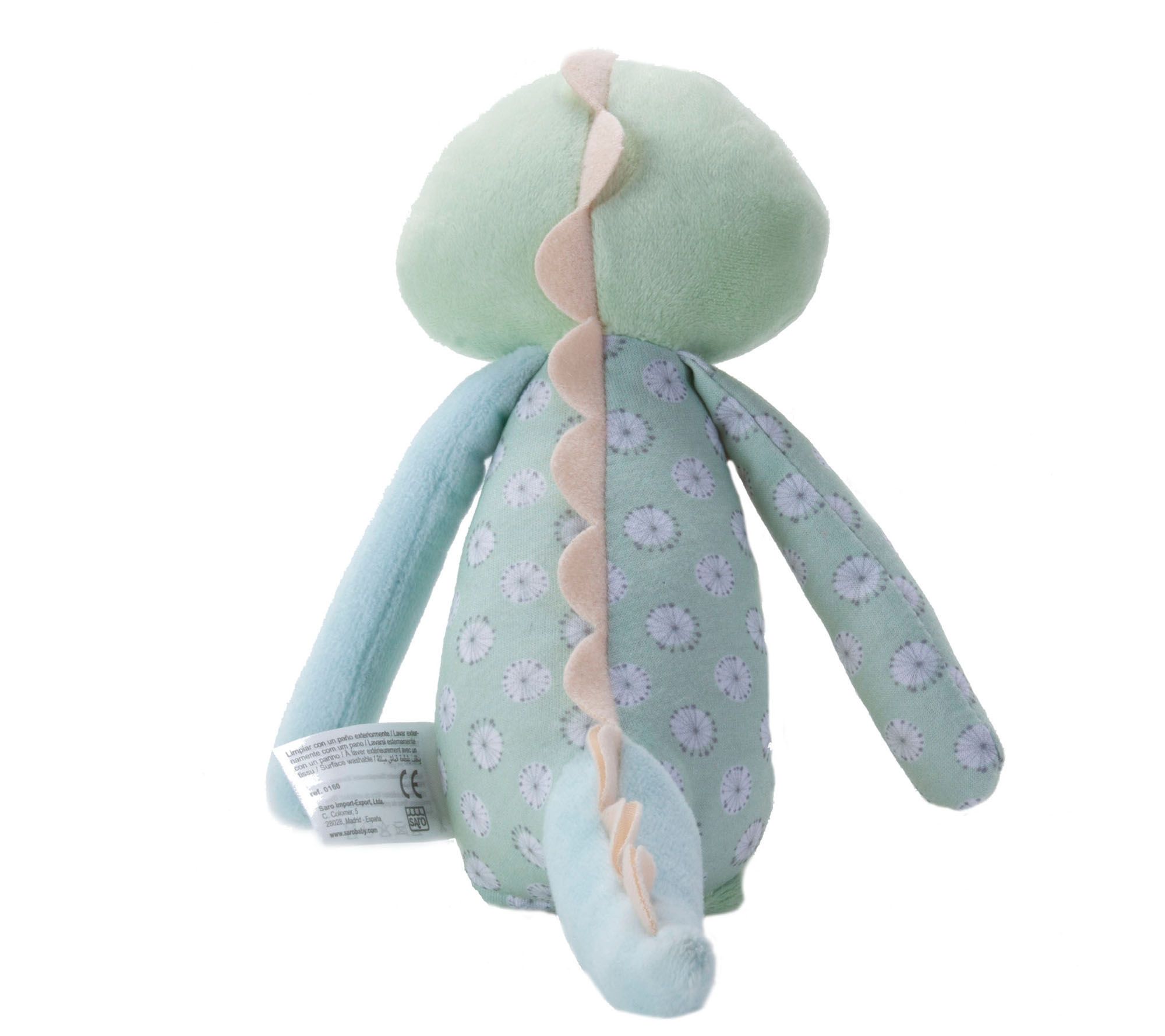 Designed with long, narrow limbs that are just the right size for small hands to hold, this dinosaur plush makes a cute crackly noise to delight your little one. From Kalencom.