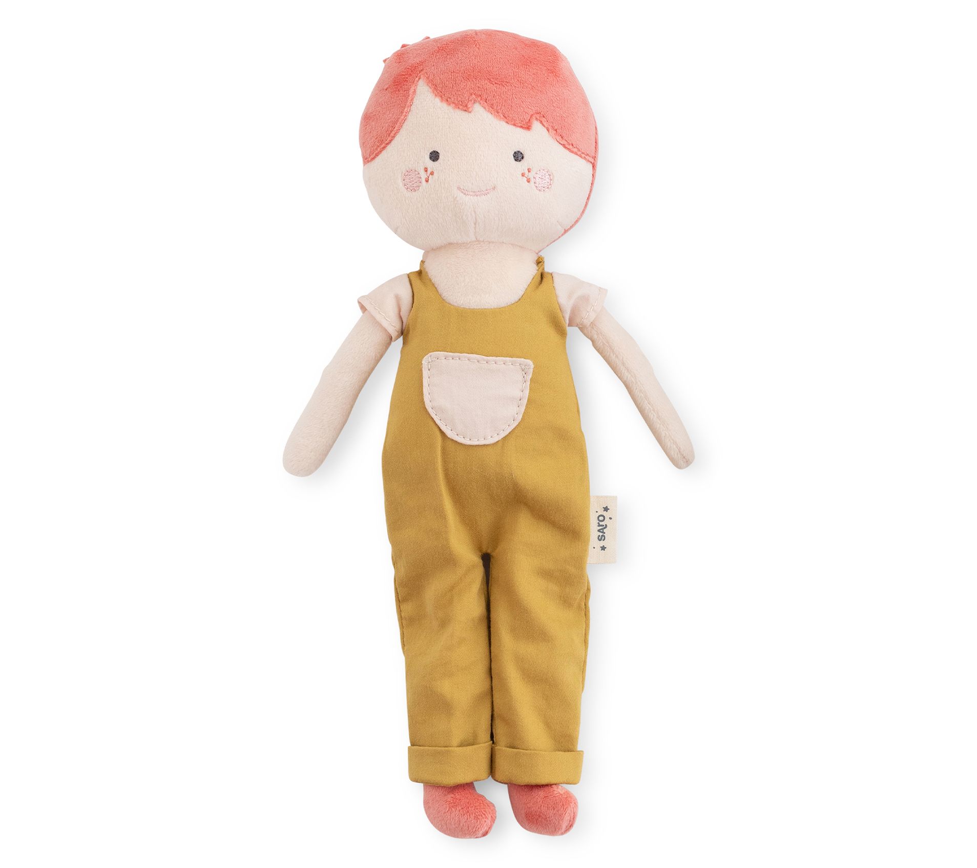 Welcome to the Funny Farm! This friendly farmer rag doll will join your little one for restful nights and fun-filled adventures. This cute companion offers comfort while helping children explore imaginative play. From Saro.