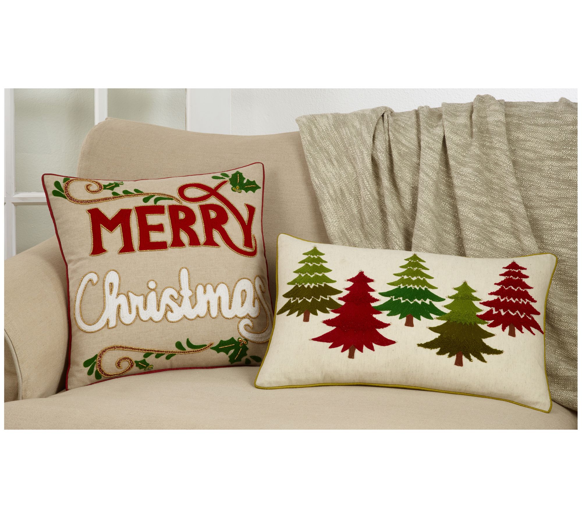 Saro Lifestyle Embroidered Christmas Tree ThrowPillow