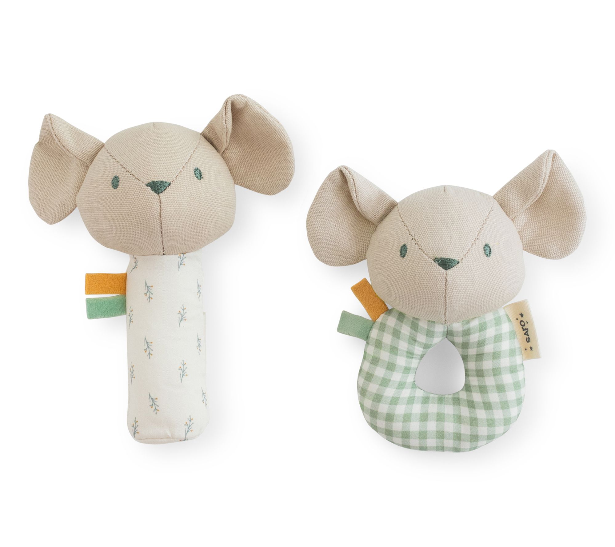 Keep the fun going with this rattle set that will entertain your little one for hours. Designed for tiny hands, these soft and squishy toys produce engaging sounds, helping your child discover new ways to play. They stimulate curiosity -- the perfect companion for your baby's development. From Saro.