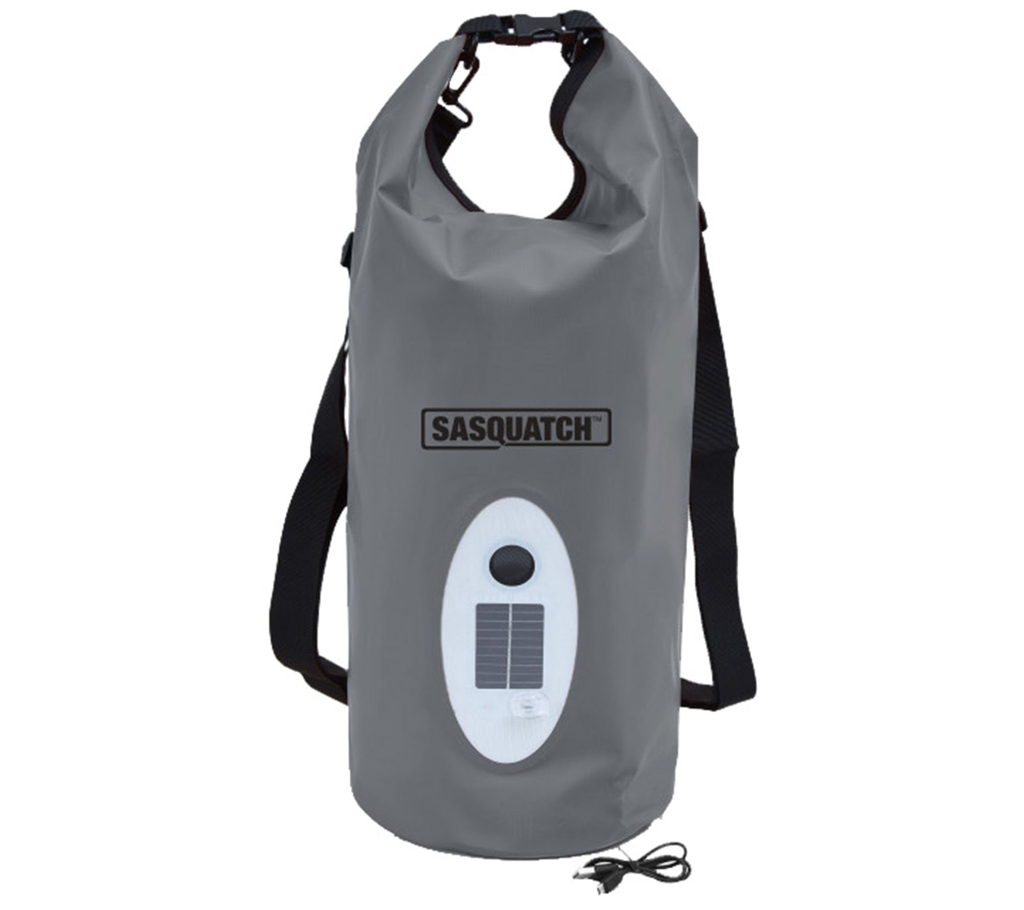 Perfect for beach days, hiking adventures, or tailgating, this solar-powered dry bag doubles as a cooler that holds up to 24 cans, and features fun LED lights and a Bluetooth speaker. From Sasquatch.