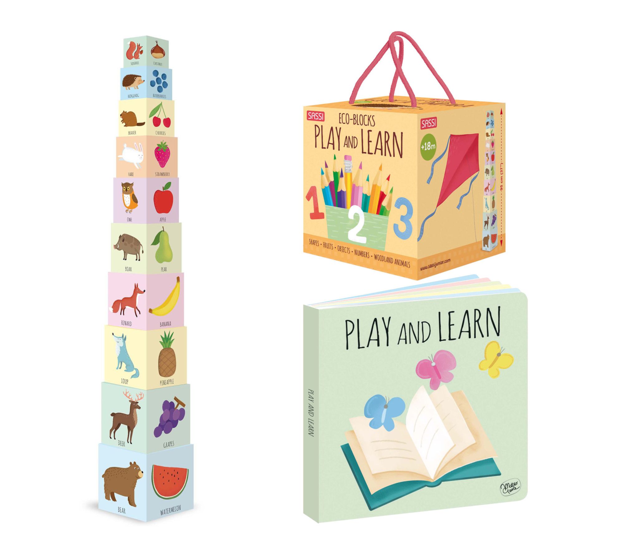 Sassi: Eco-Blocks - Play & Learn - 10 StackingCubes & Booklet