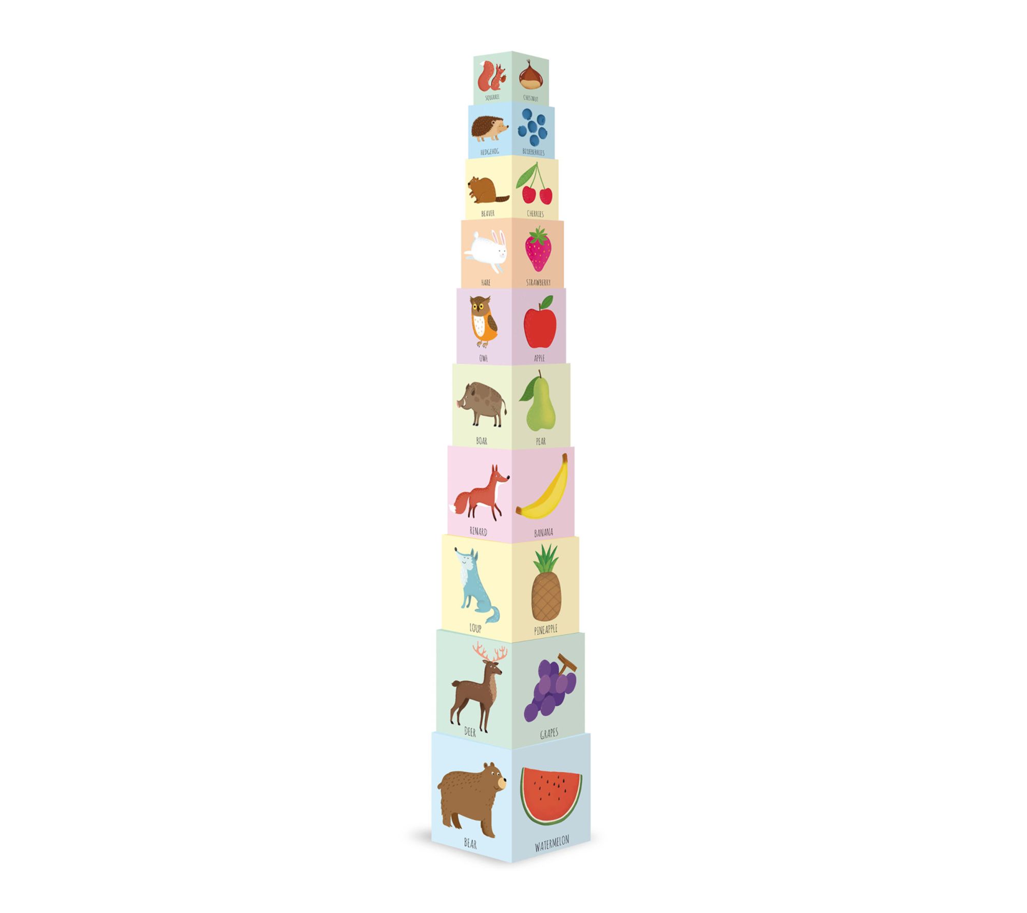 Build, learn, and explore together with this engaging blocks and booklet set that invites young children to discover shapes, numbers, fruit, and woodland animals -- all while having fun stacking cubes to new heights. Sparks curiosity and growth through hands-on play, making it a joyful way for families to encourage early learning and creativity. From Sassi.