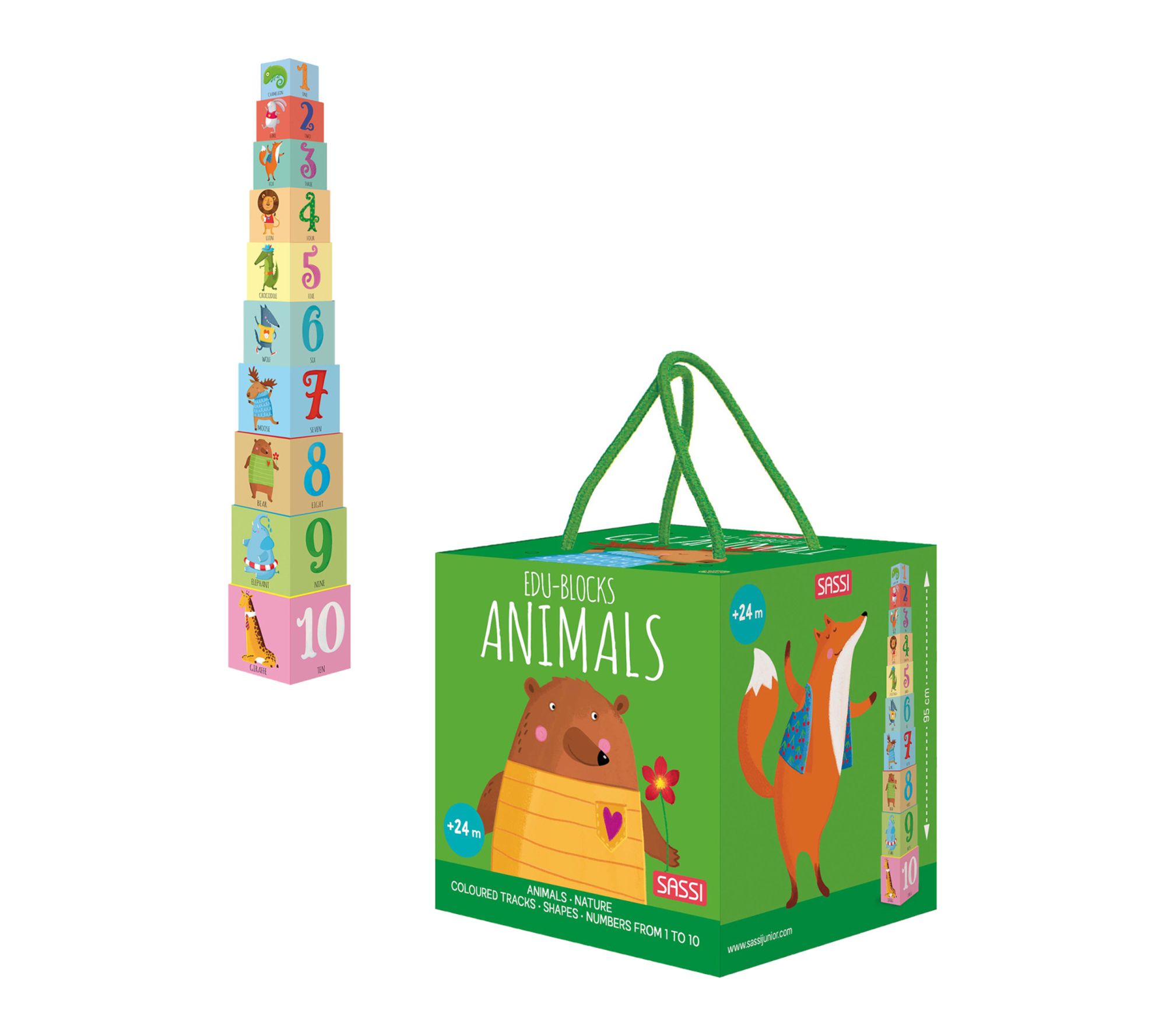 Sassi: Edu-Blocks - Animals - 10 Stacking Cubes& Booklet Set