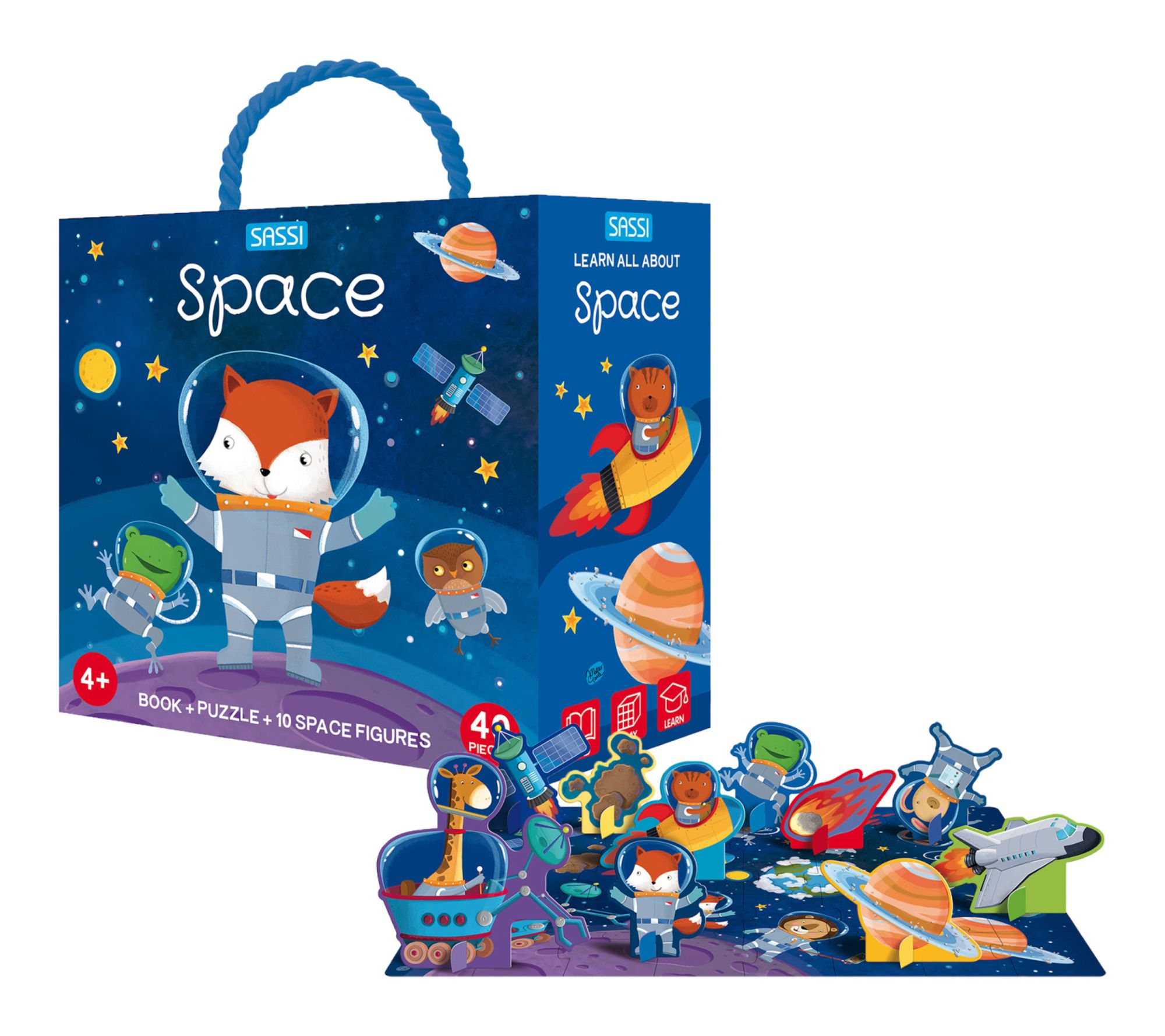 Exploring space has never been more fun -- curious learners will piece together vibrant planets and stars, dive into fascinating galaxy facts with the included booklet, and bring the adventure to life with ten assemble-yourself space figures. This engaging puzzle set invites young astronomers to build, read, and play as they develop creativity and essential skills. From SASSI.